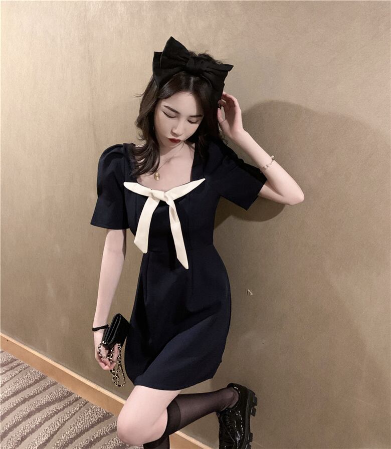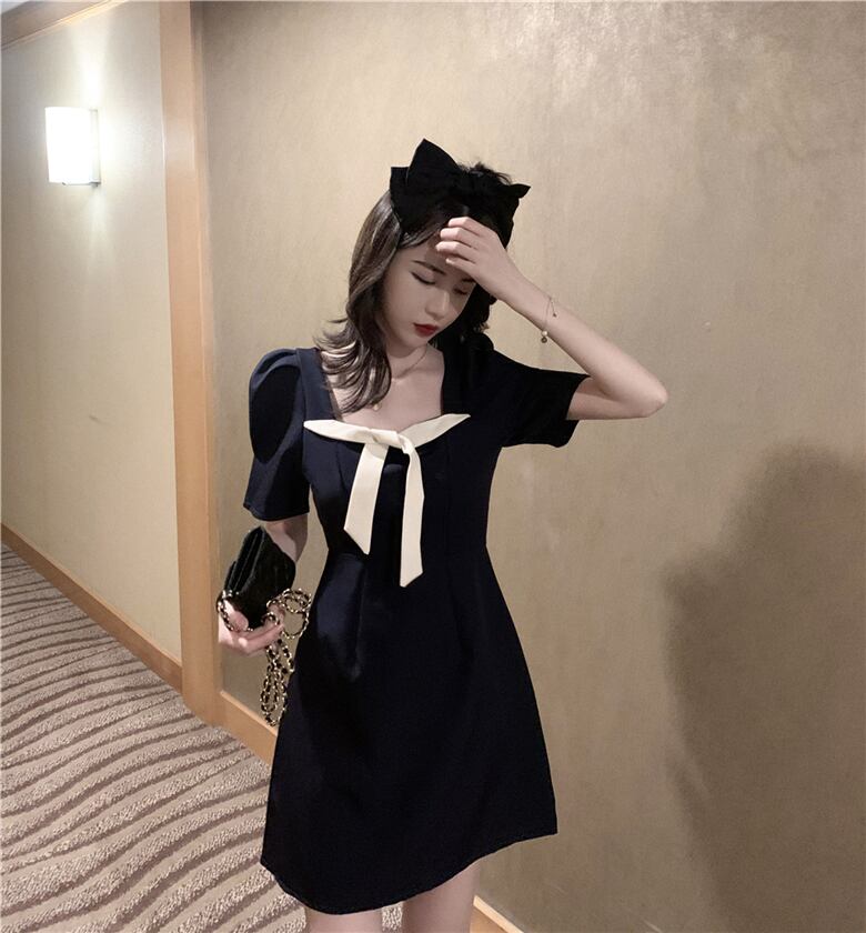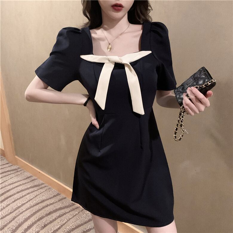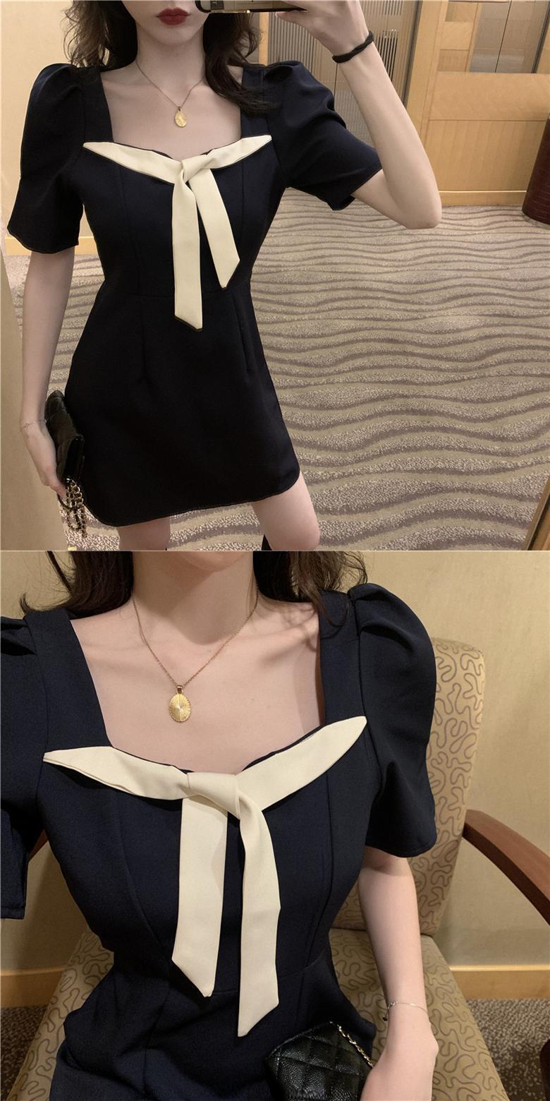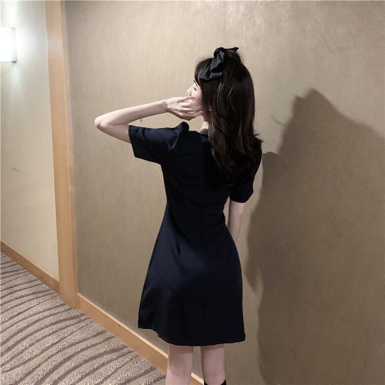 スタンダードドレス スプリングスリムAラインスカート ウェストブラック レトロ 春物 スクウェア セブンプリンセス43107031665