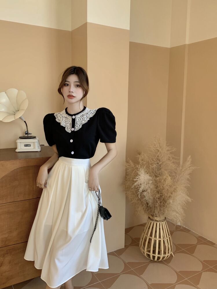 スカート サマー薄手ホワイトAラインハイウェストウェストロング 夏物 セブンプリンセス39136449029