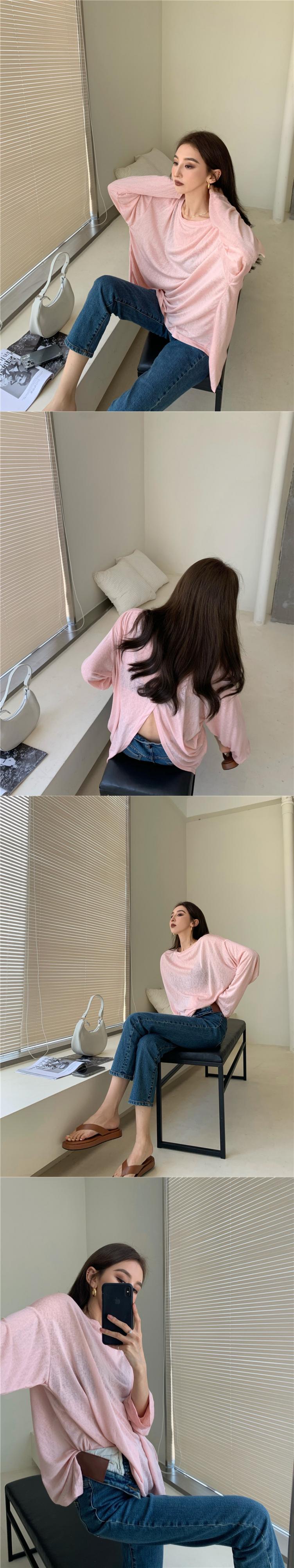 Tシャツ サマー薄手ルーズバックカジュアルブラウス トップス ロング 夏物 セブンプリンセス97561761143