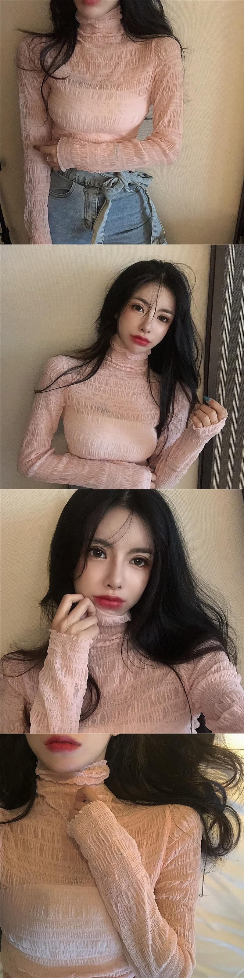 レースシャツ スプリングスタイルプリーツメッシュブラウス レディース 春物 セブンプリンセス85011802101