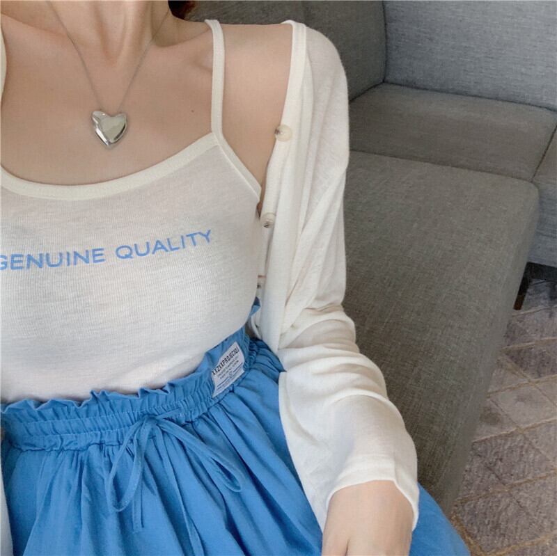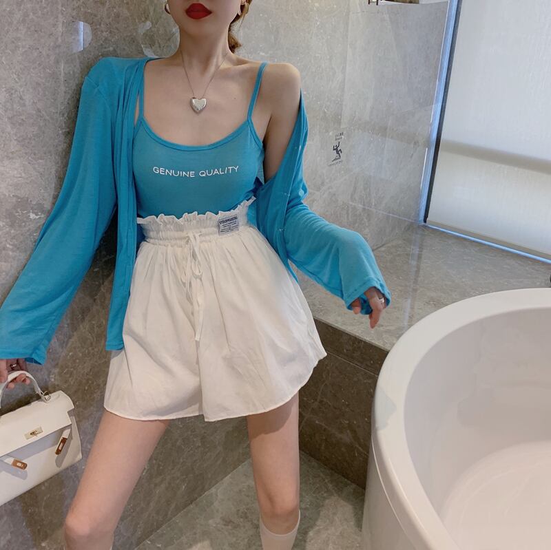 色:白いサスペンダー+カーディガン,グリーンスリング+カーディガン,ブルーのスカートパンツ,白いスカートパンツ
