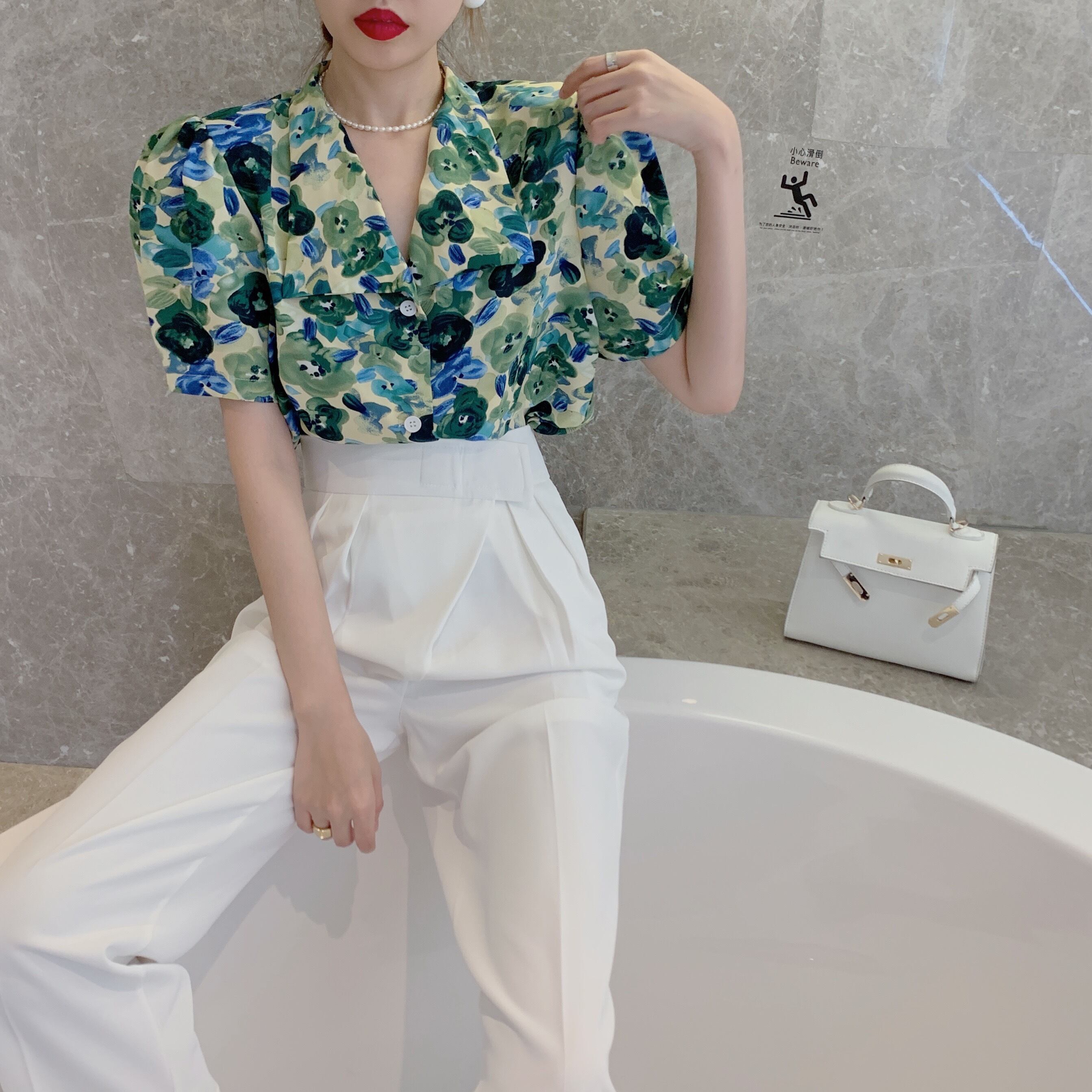 色:フラワートップ,白いズボン
