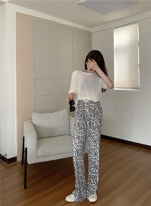 パンツ サマー薄手スタンダードプリントルーズカジュアル レトロ 夏物 セブンプリンセス16115647738
