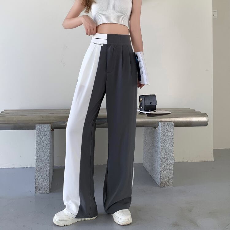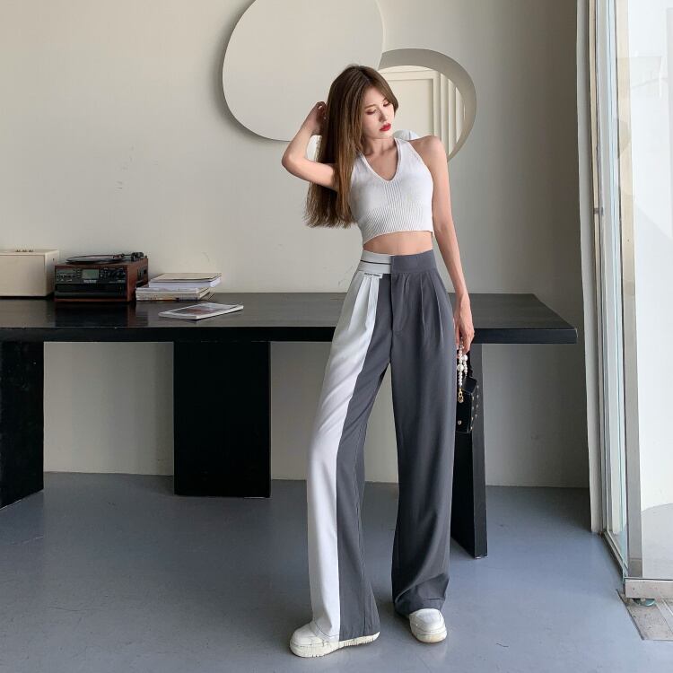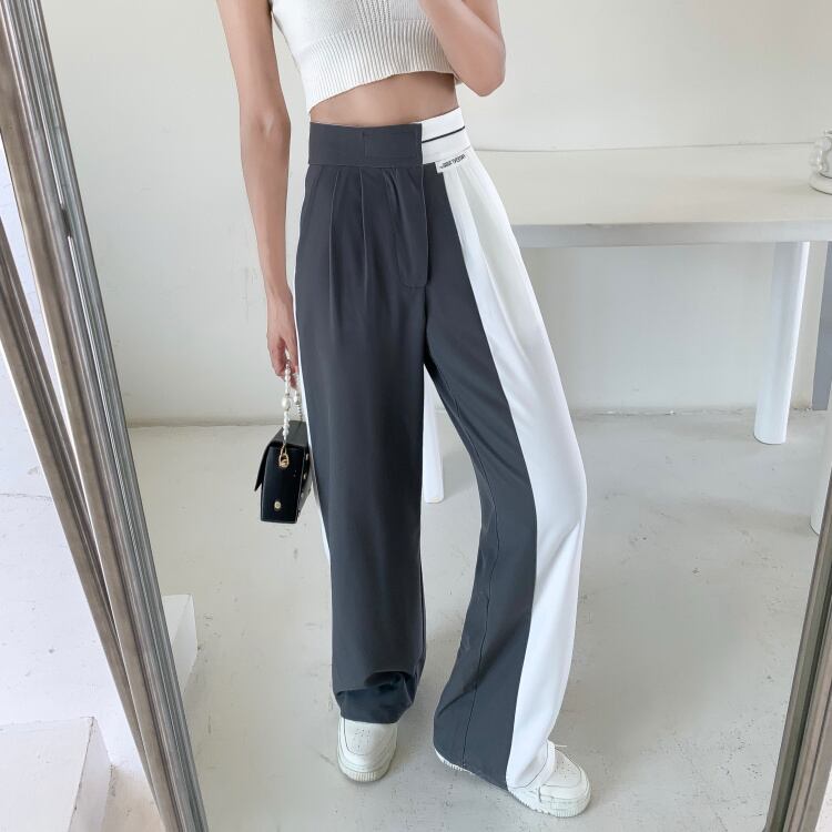 パンツ サマー薄手ハイウェストウェストルーズワイドレッグカラー 夏物 ワイドパンツ セブンプリンセス74351748876