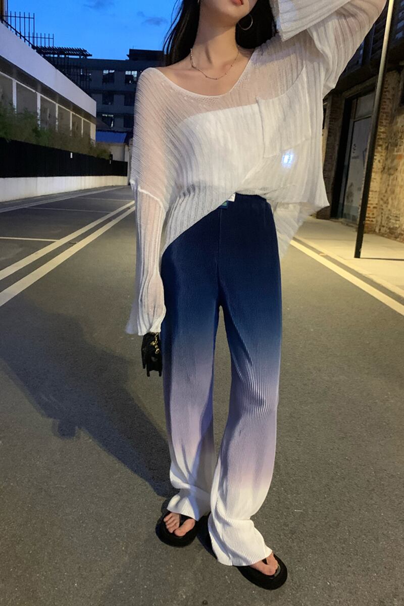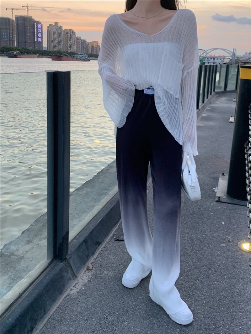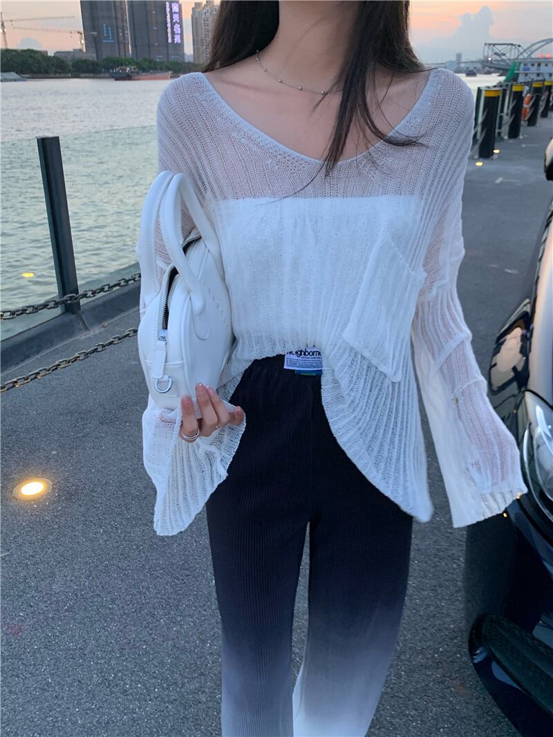 ニットセーター 薄手サマールーズブラウス カジュアルホワイトトップス ロング 夏物 セブンプリンセス43242989870