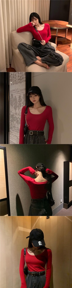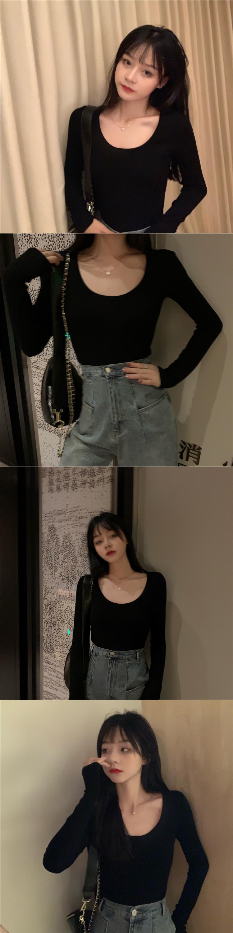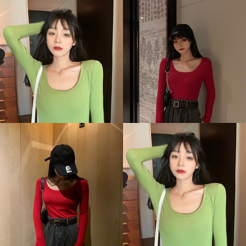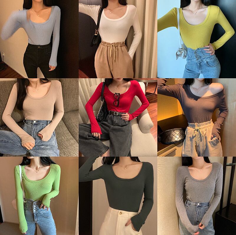 ソリッド カラーシャツ スプリングスタイルスリム長袖スリーブTシャツ ロング 春物 ソリッドカラー セブンプリンセス55085821541
