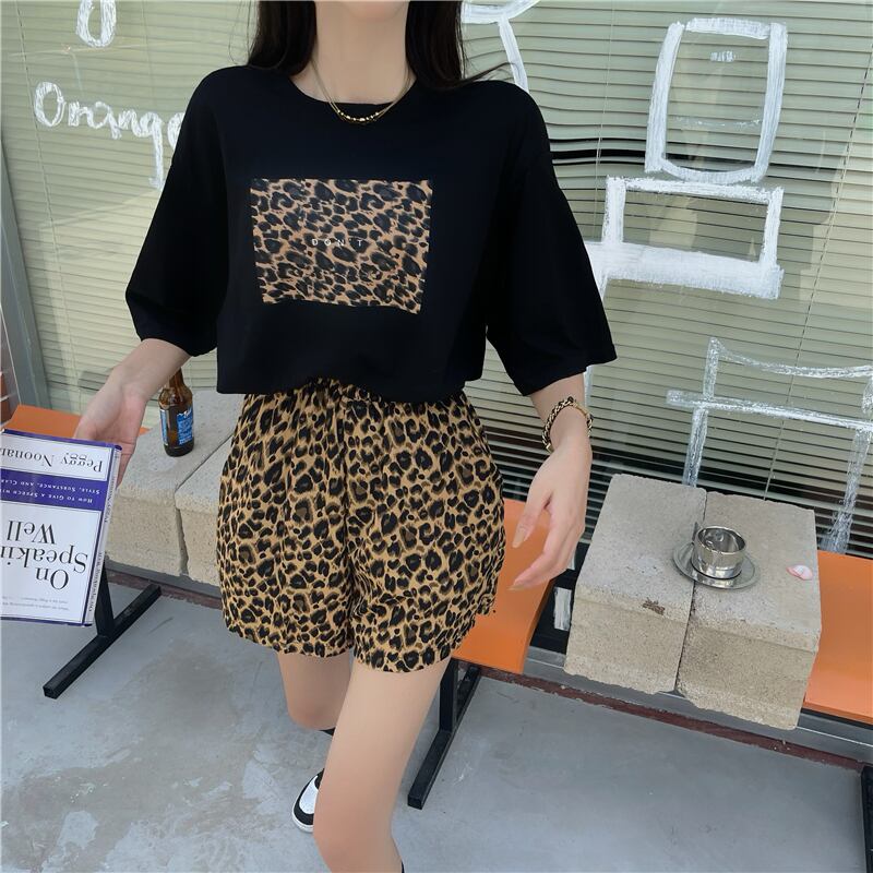 ショーツ サマー薄手ルーズパンツ レッドレオパードプリント柄カジュアル 夏物 ブルマー セブンプリンセス48923479472