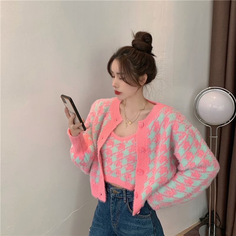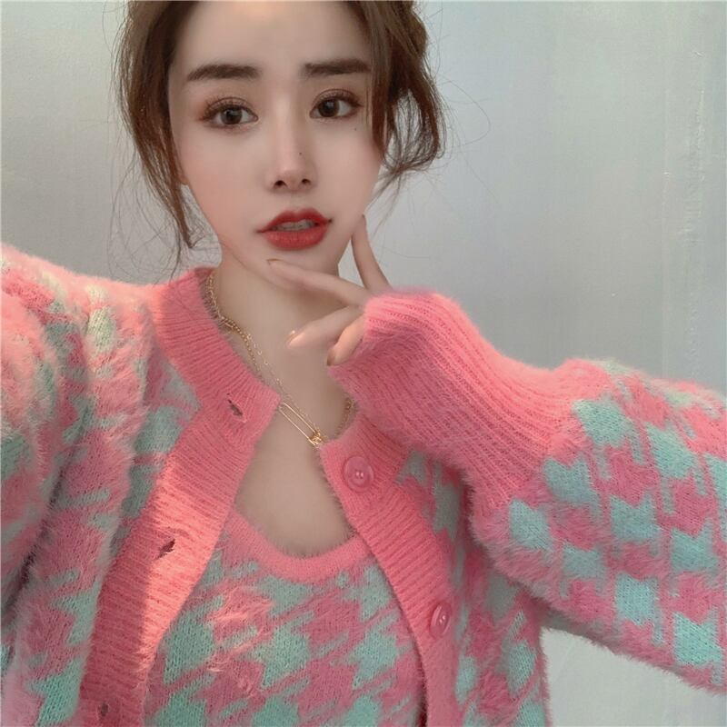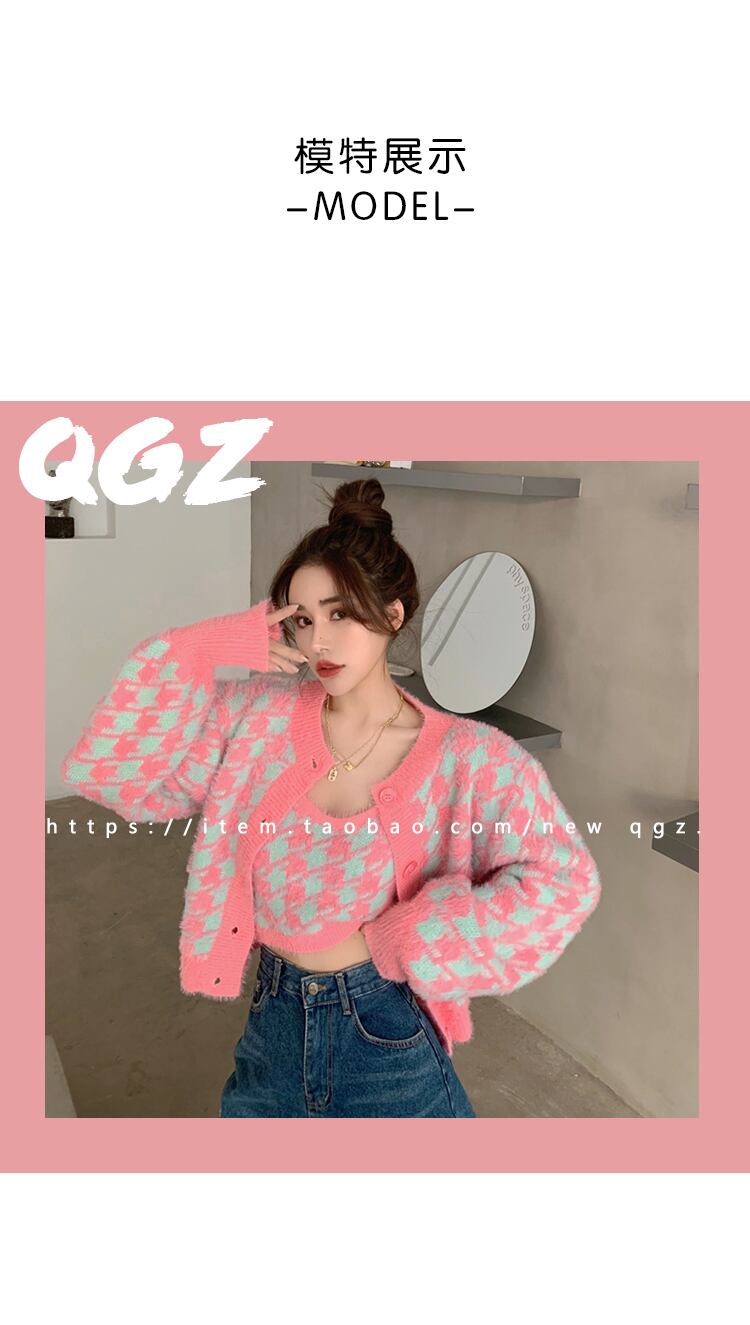 ショートカーディガンセーター ルーズスプリングスタイルニット ジャケット トップス ピンク 春物 セブンプリンセス18083474800