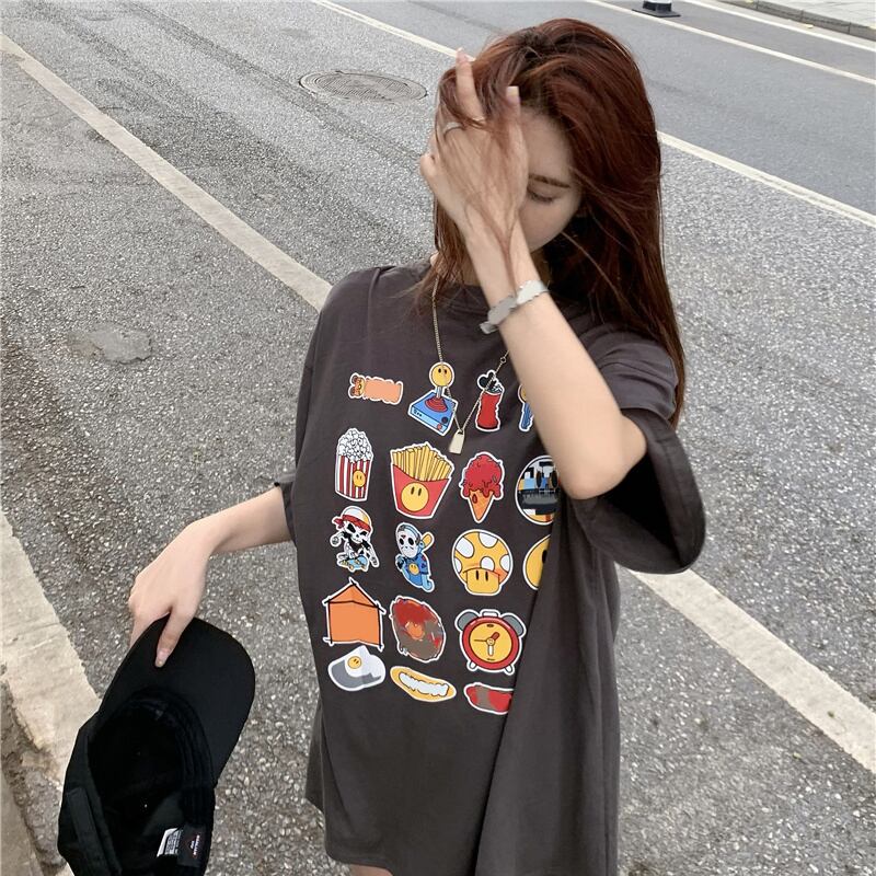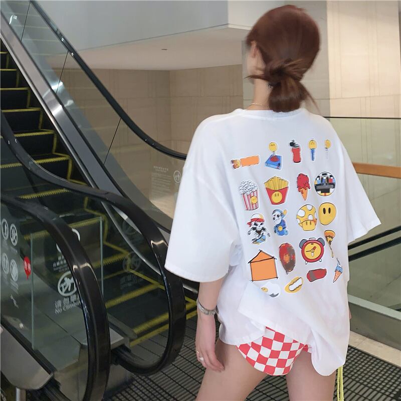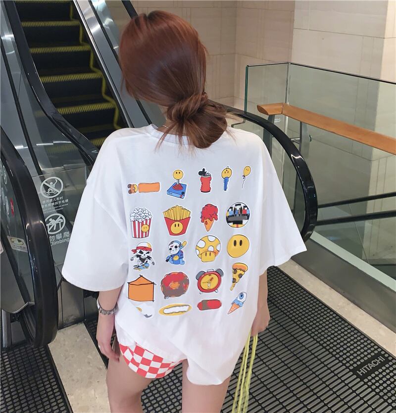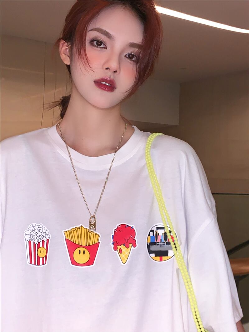 ホワイトTシャツ サマープリントルーズカジュアルトップス 夏物 セブンプリンセス53450821433