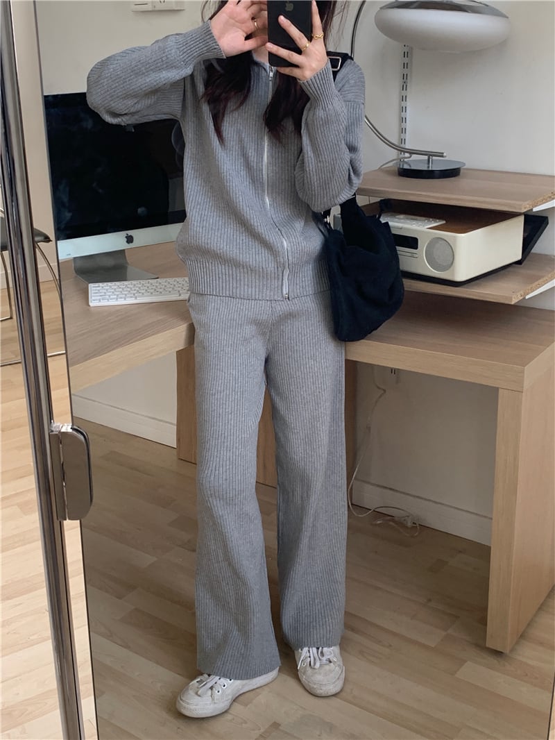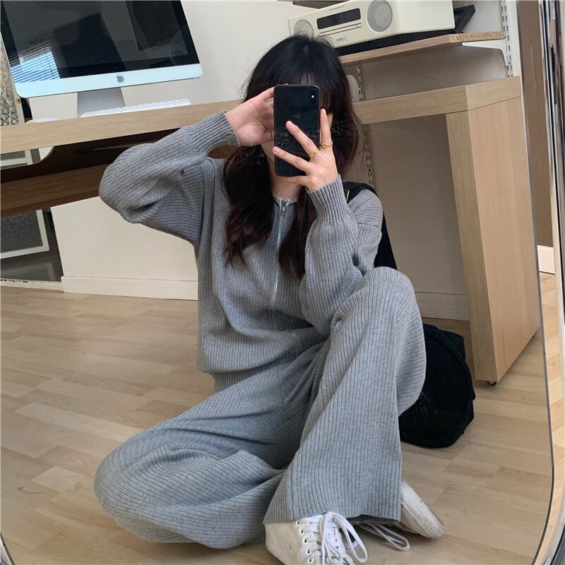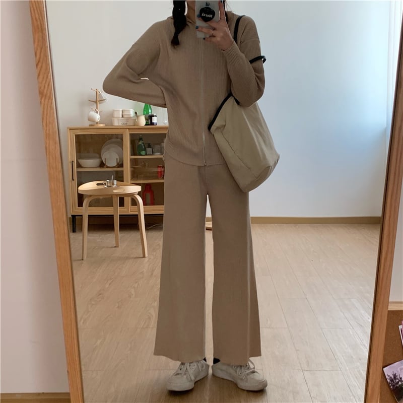 スプリングカーディガンジャケット ニットセーター ハイウェストウェストワイドレッグパンツ スタイル 春物 ワイドパンツ セブンプリンセス45831046199