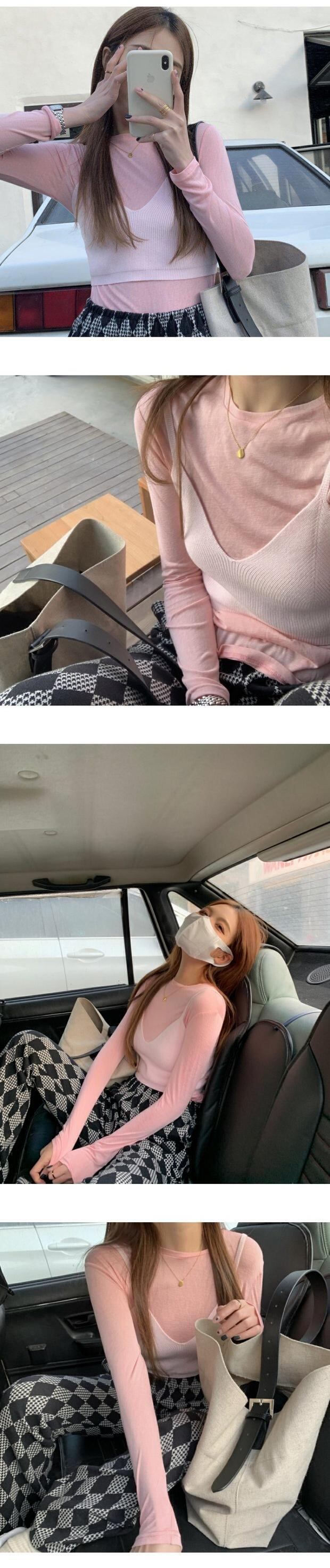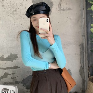 シャツ ロングスプリングスタイルソリッド カラースリムTシャツ ラウンドネックトップス 長袖 春物 Oネック ソリッドカラー セブンプリンセス66092381475