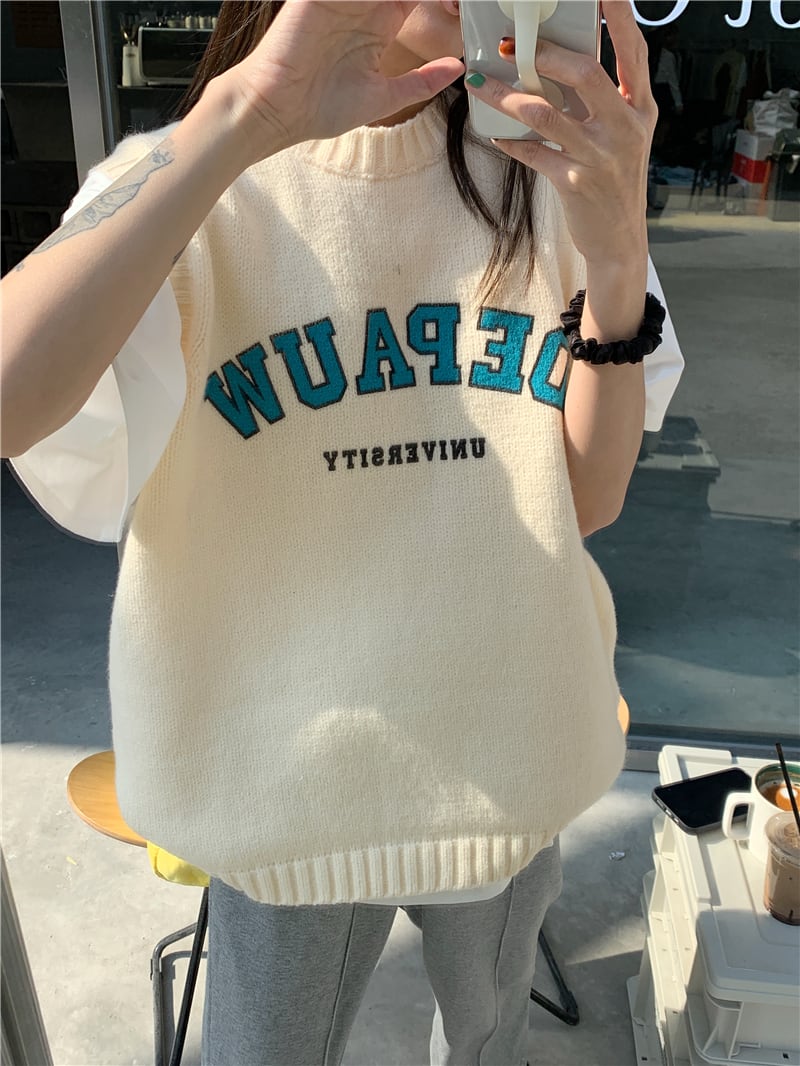 ニットスタイルスプリングルーズノースリーブセーター トップス 春物 セブンプリンセス655582139