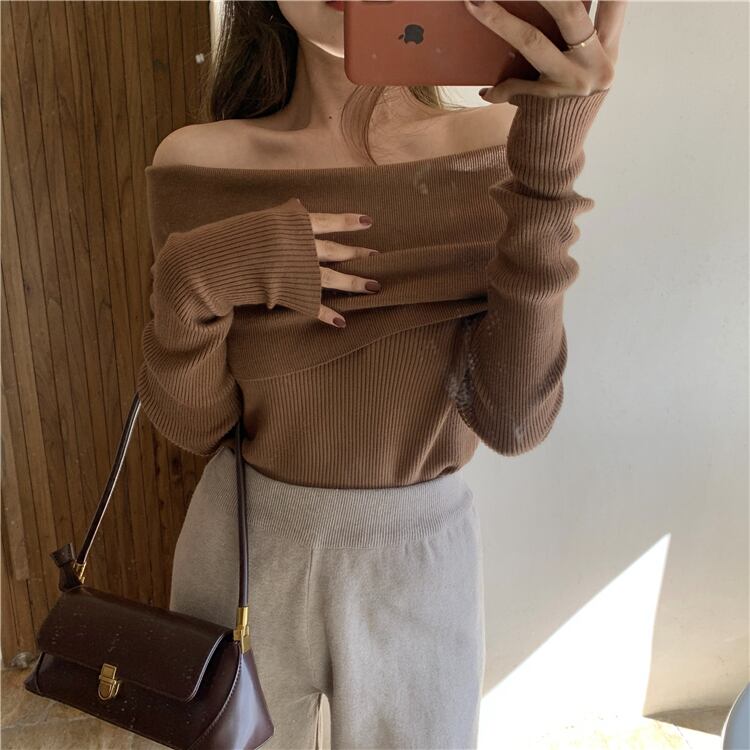 スプリングショートセーター レディースルーズニットトップス ロング 春物 オフショルダー セブンプリンセス94293160635