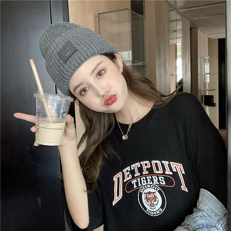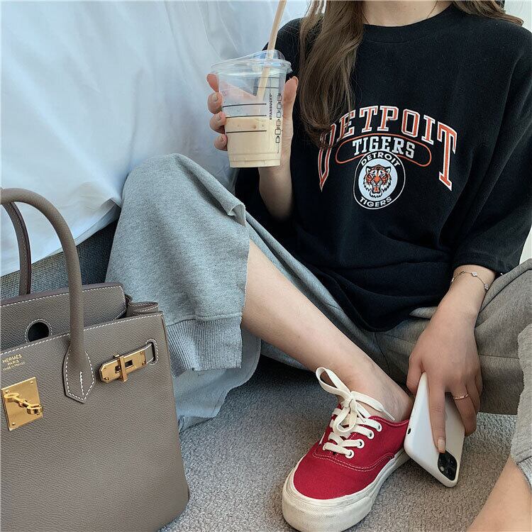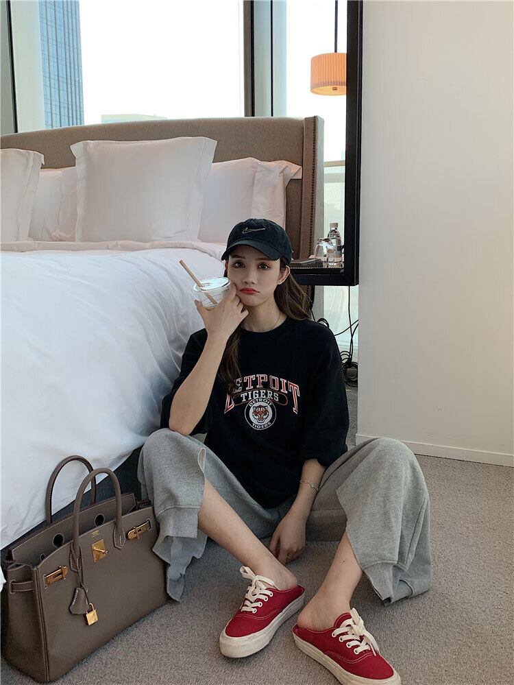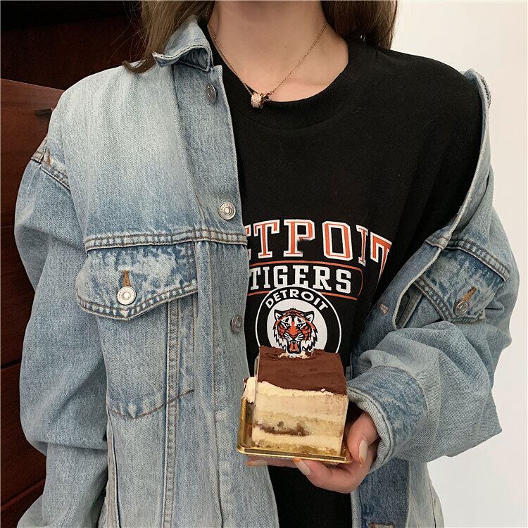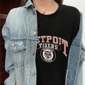 スプリングブラックシャツ レディースルーズプリントTシャツ トップス 春物 セブンプリンセス96523080214