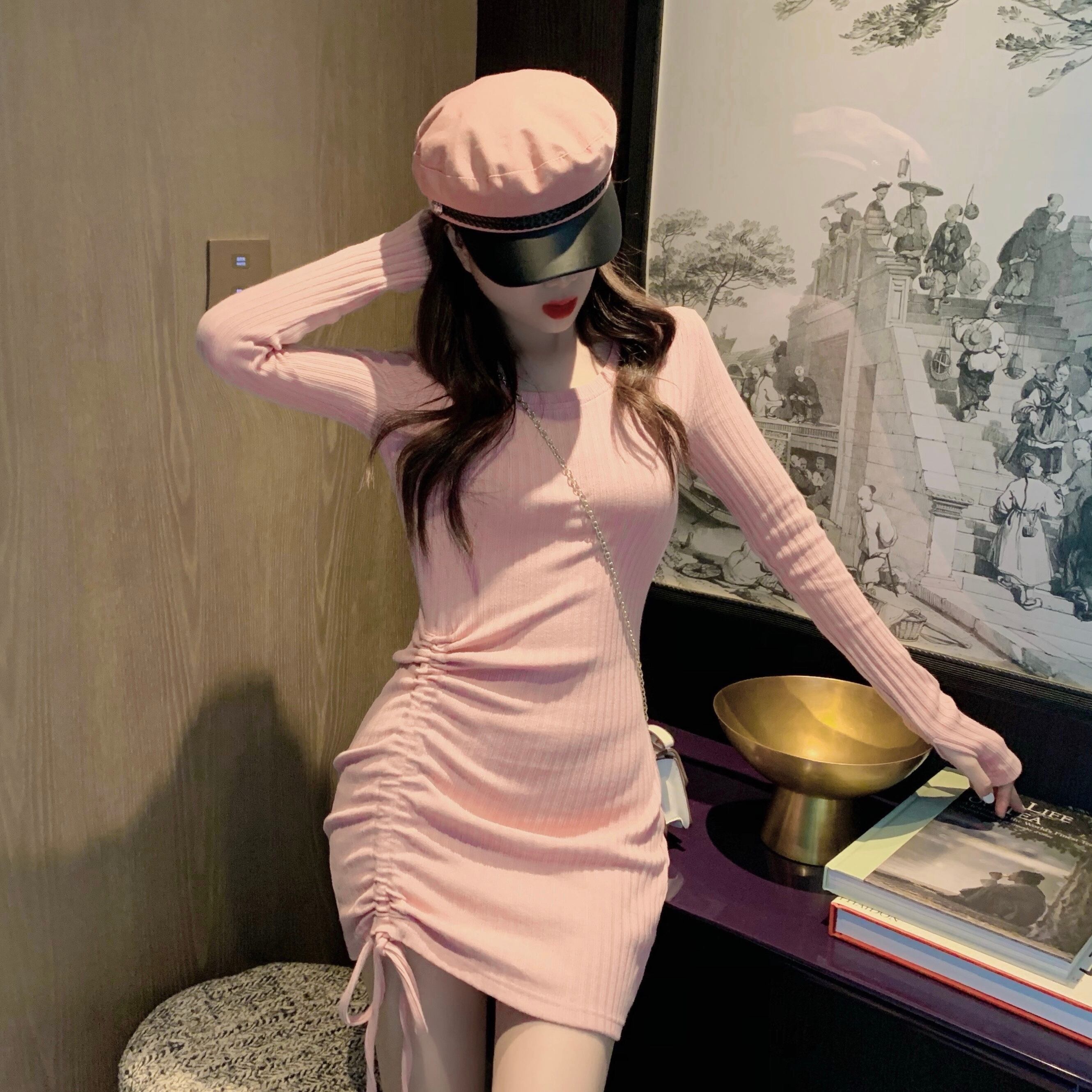 ニットドレス スプリングロングウェスト薄手ギャザースカート 長袖 春物 セブンプリンセス13659656381
