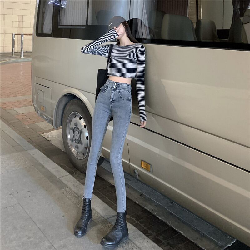 ブルーハイウェストスキニージーンズ スプリングパンツ 薄手 レッド 春物 セブンプリンセス30467862862