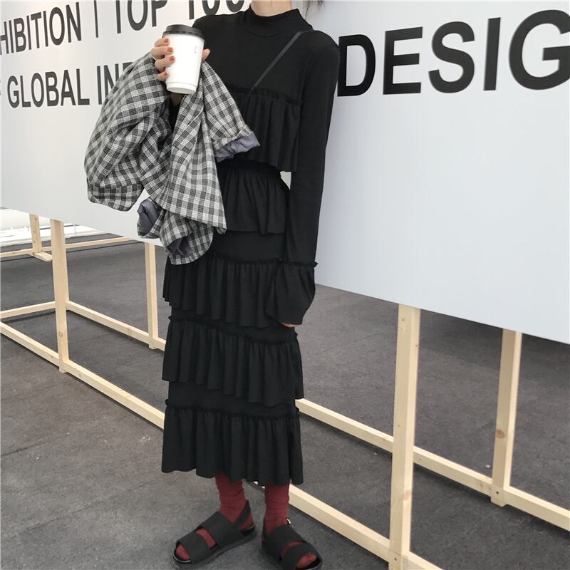ブラックドレス スプリングウェスト薄手スカート 春物 セブンプリンセス7689314365