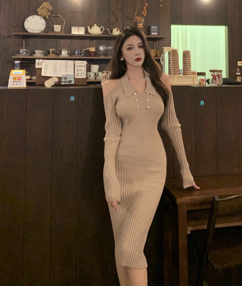 ニットドレス スプリングスタイルウェストセーター スカート ロング 春物 セブンプリンセス38854636536
