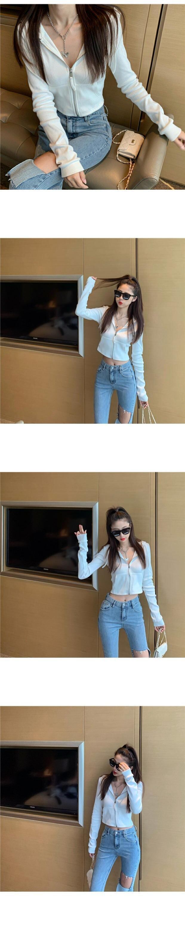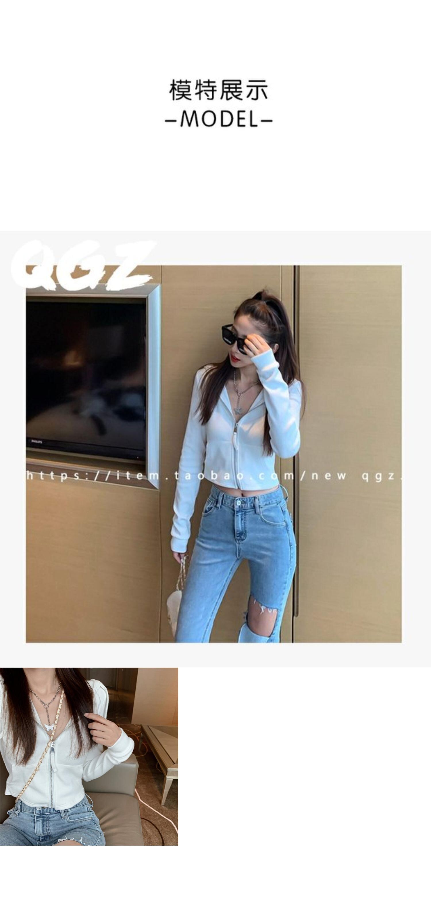 フードショートジャケット レディーススプリング薄手ニットジッパーカーディガントップス ロング 春物 セブンプリンセス8538608099
