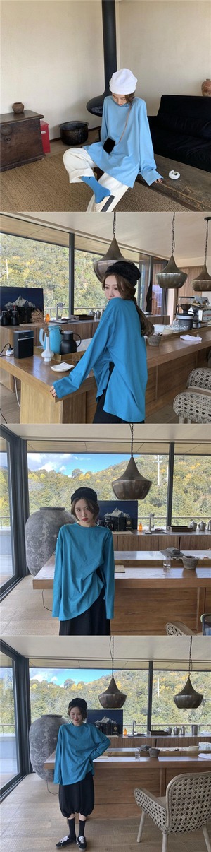 ルーズTシャツ シャツ スプリングカラーブラウス ラウンドネック ロング 春物 Oネック ピュア セブンプリンセス37778796297