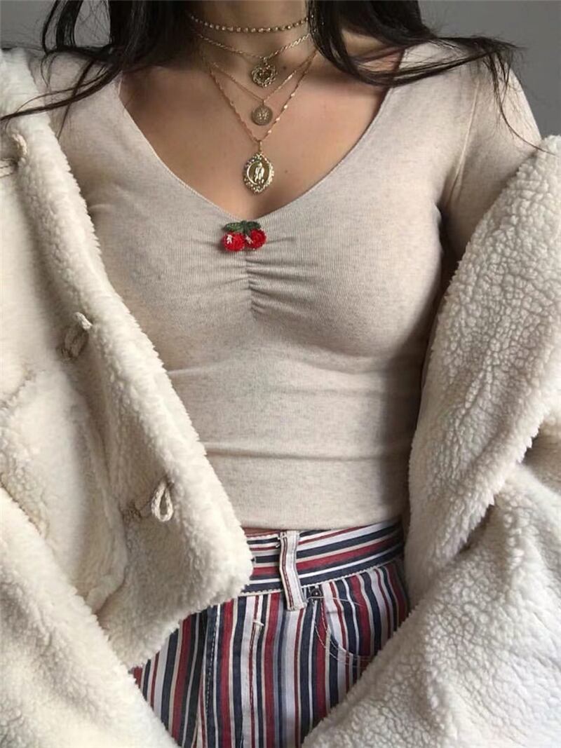 スリムシャツ スプリングショート長袖スリーブTシャツ トップス ロング 大人ガーリー スウィート キュート カジュアル 春物 セブンプリンセス91641165294