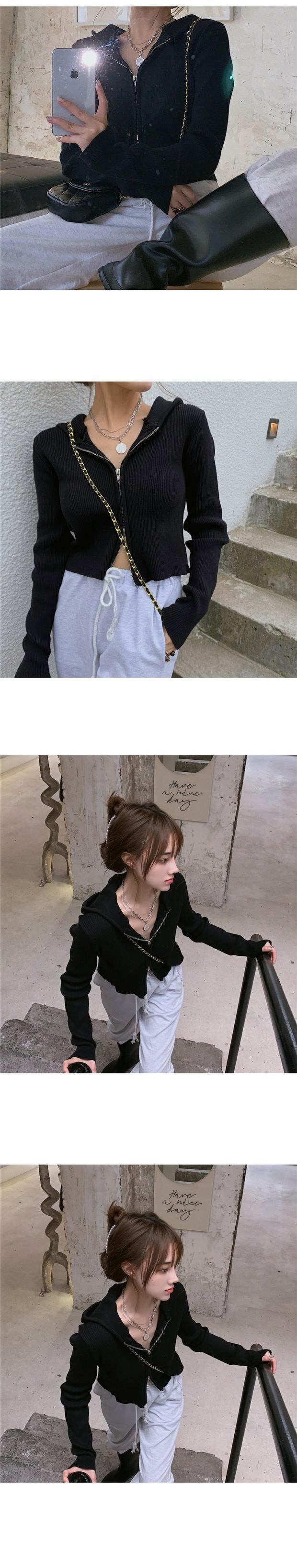 ジッパーセーター ジャケット スプリングオータムスタイルフードカーディガンショート ピンク 春物 秋物 セブンプリンセス70847171824