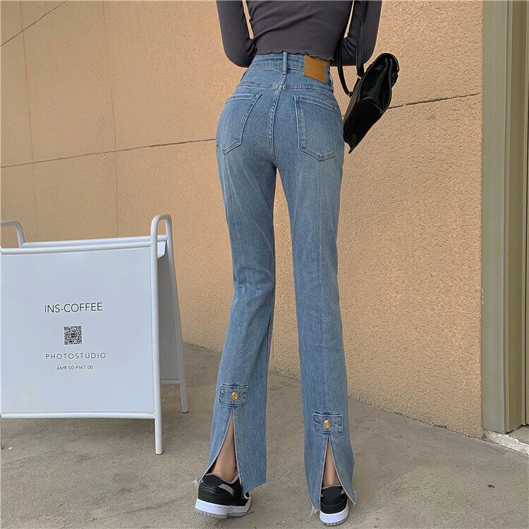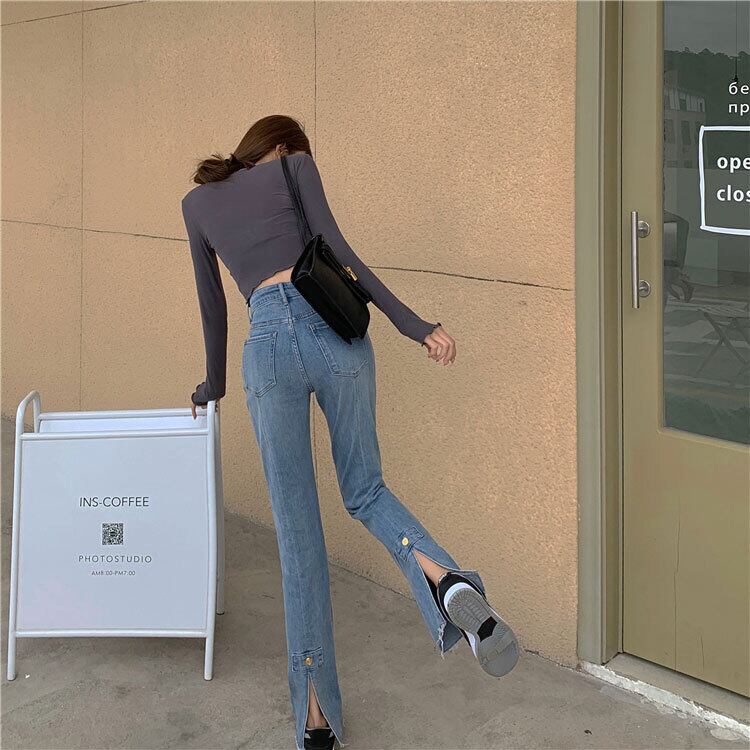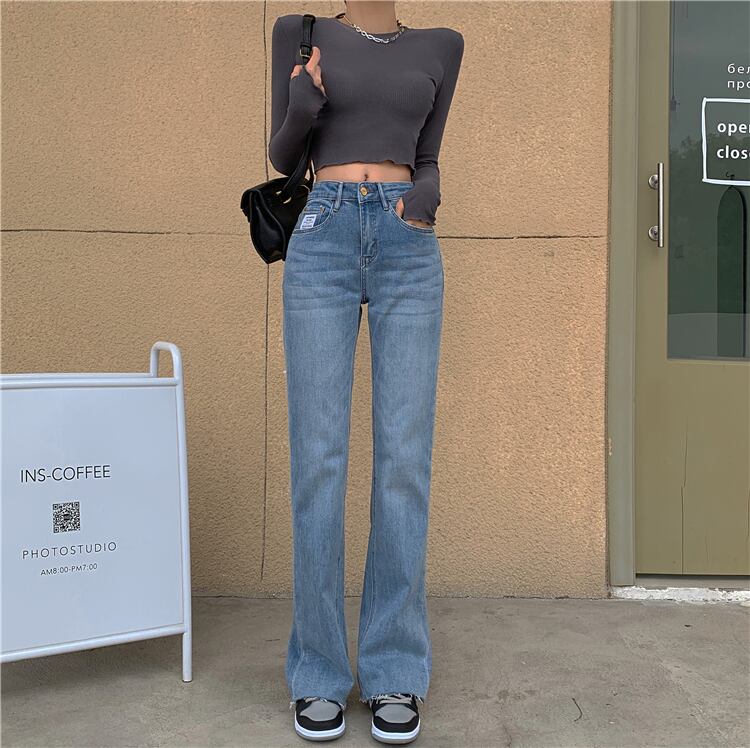 スキニーパンツ ハイウェストウェストスプリングルーズワイドレッグジーンズ レッド 春物 ワイドパンツ セブンプリンセス76233980561