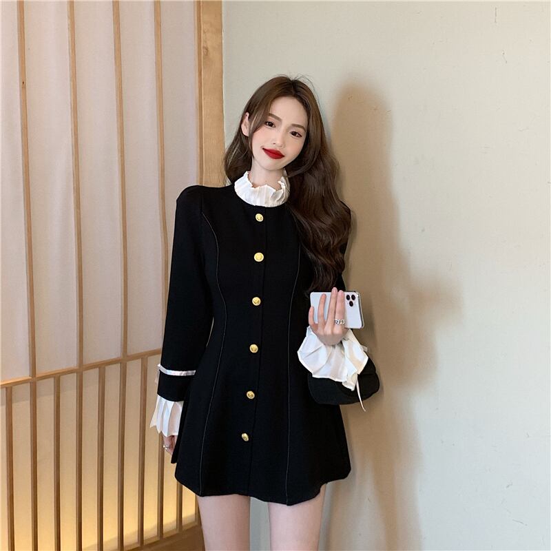 スタンダードドレス スタイルスプリングカラーウェストAラインスカート ロング レトロ 春物 セブンプリンセス9678091151