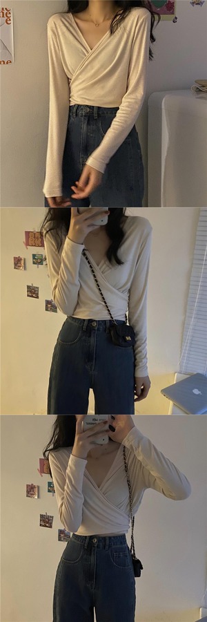 スプリングクロスVネック薄手トップス スリムショートTシャツ ロング 春物 セブンプリンセス2335176136