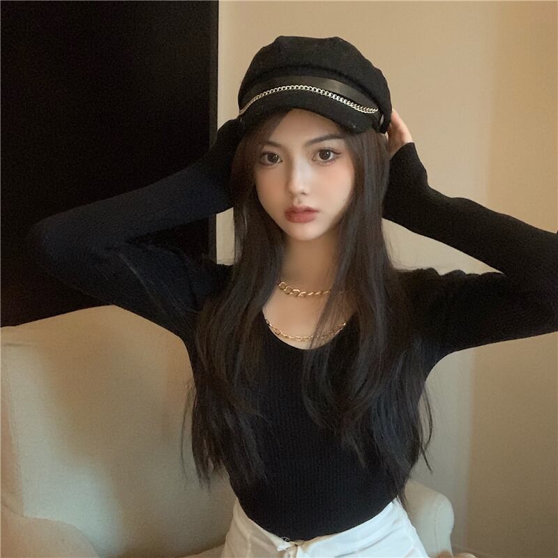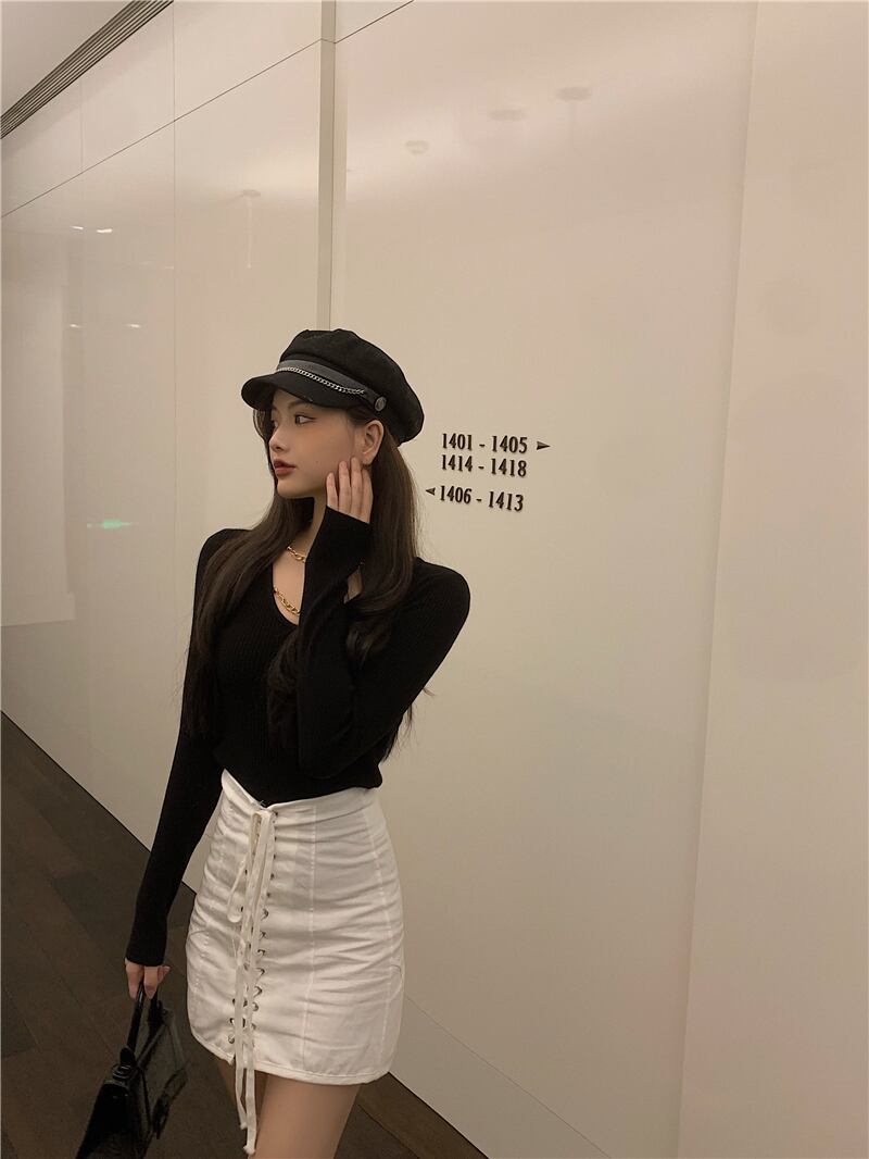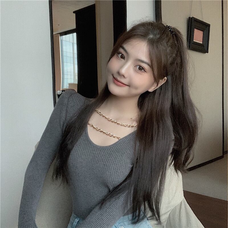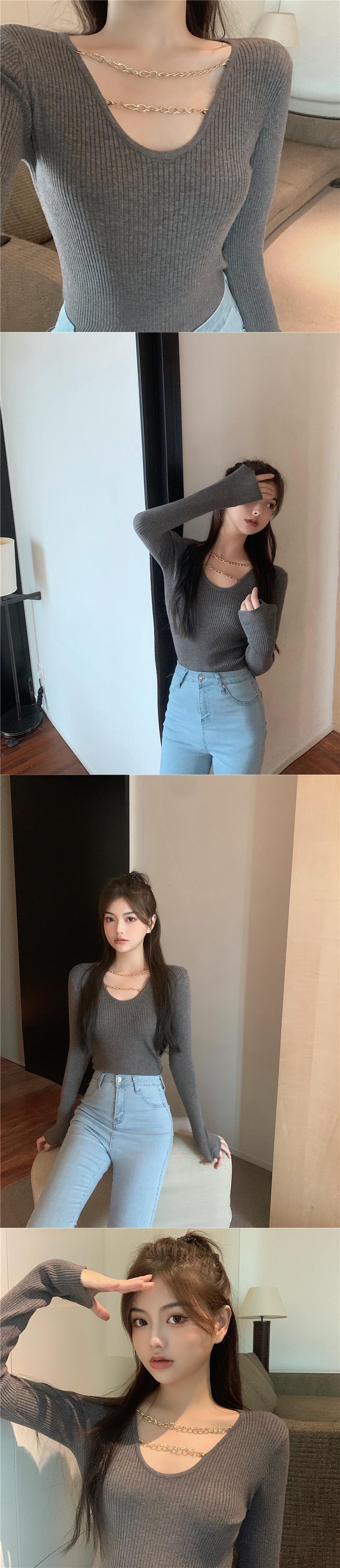 セーター スプリングVネックチェーン トップス ショートスタイルシャツ 春物 セブンプリンセス2350998399