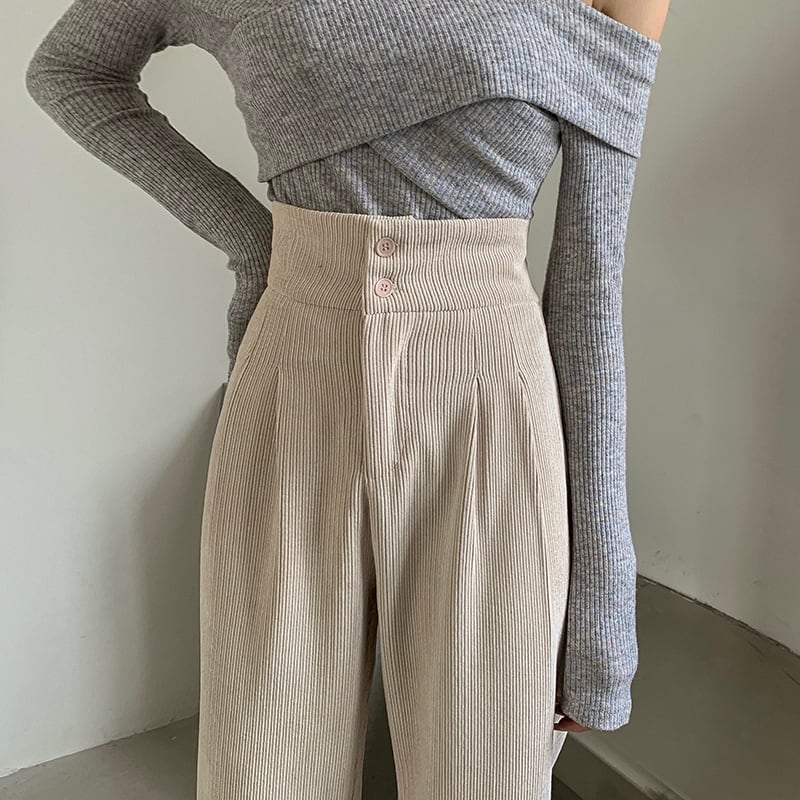 コーデュロイパンツ スプリングハイウェストルーズスタンダード レトロ 春物 セブンプリンセス52583907066
