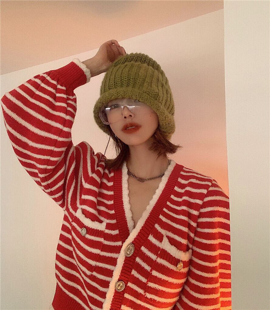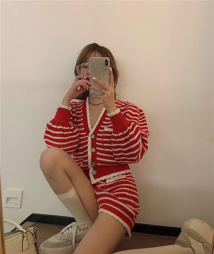 Vネックセーター スプリングサマールーズストライプカーディガンショートトップス 大人ガーリー スウィート キュート カジュアル 春物 夏物 セブンプリンセス37775762817