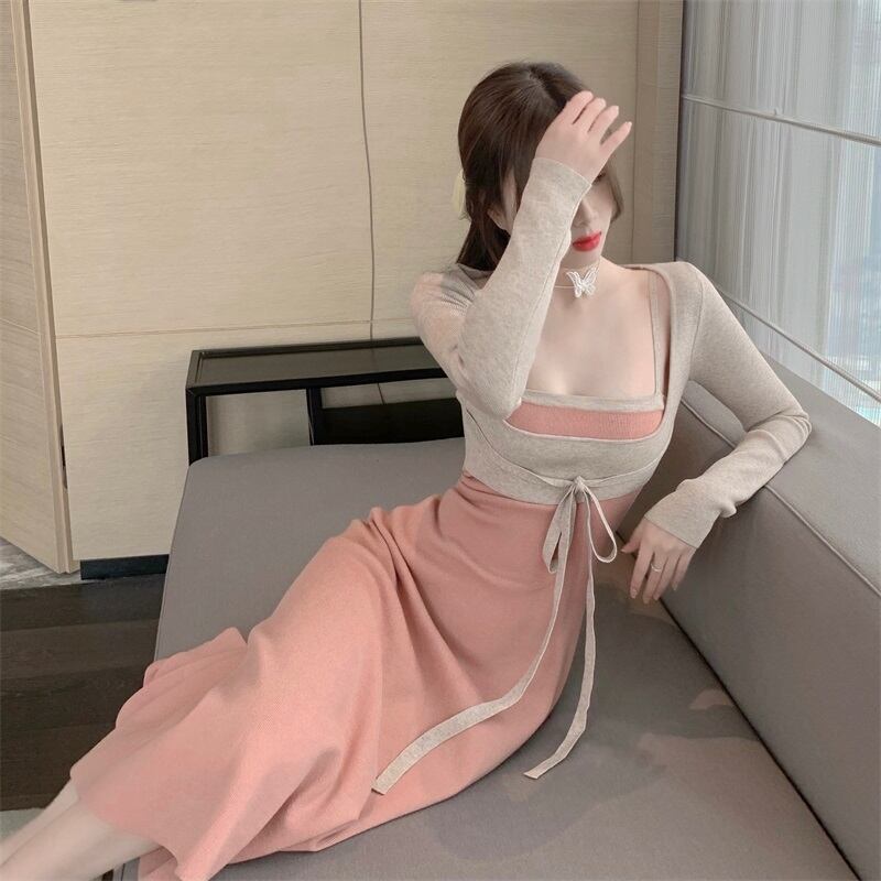 ニットドレス スプリングウェストスカート Aラインロング 春物 セブンプリンセス59405857663