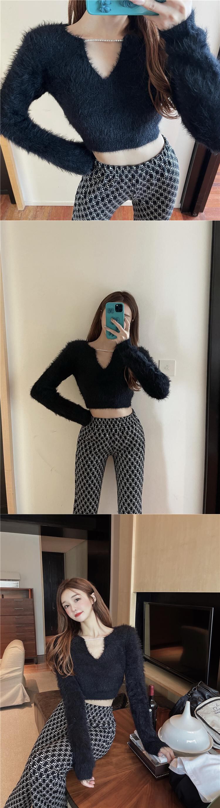 セーター スプリングスタイルチェーン Vネックトップス スリムショートプルオーバー 春物 セブンプリンセス68388048659