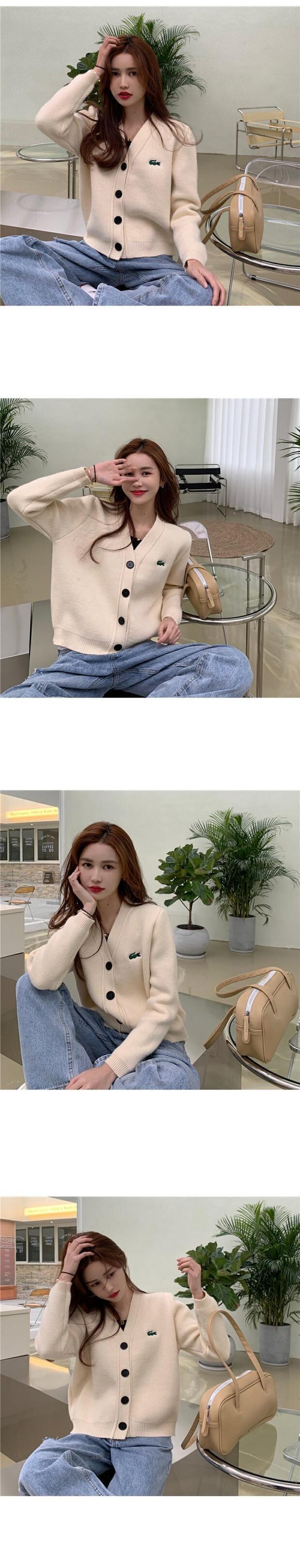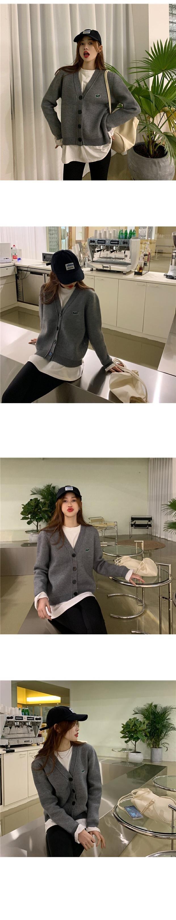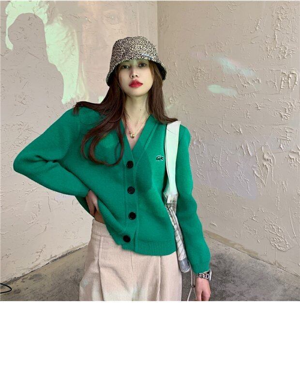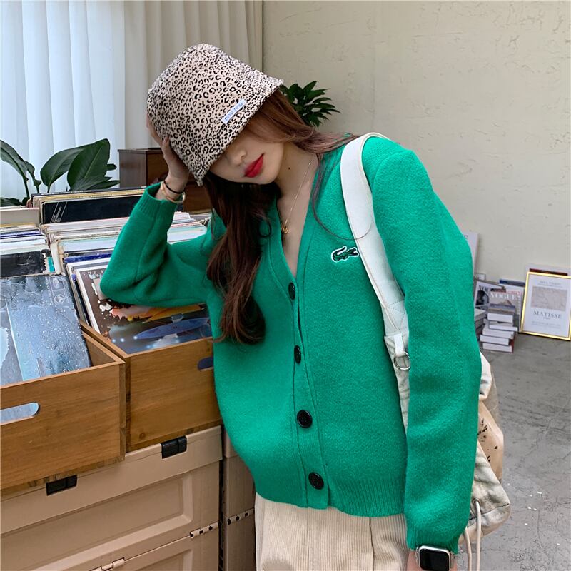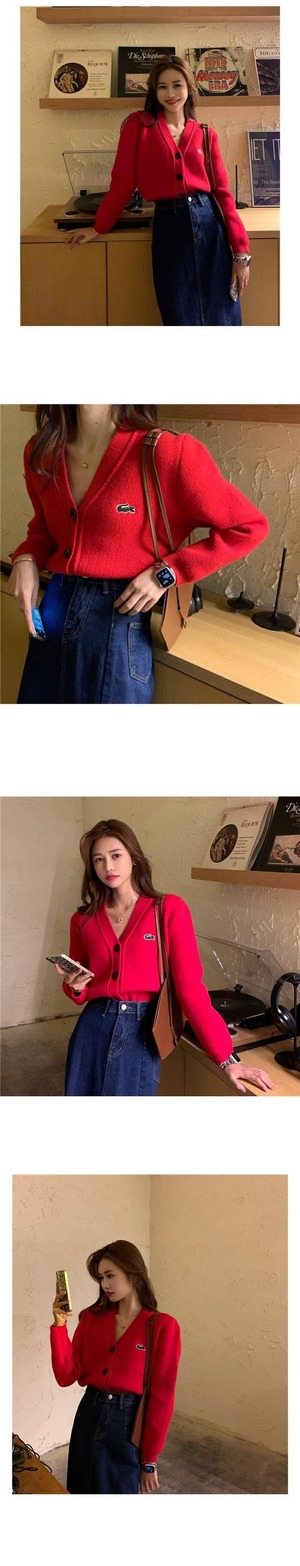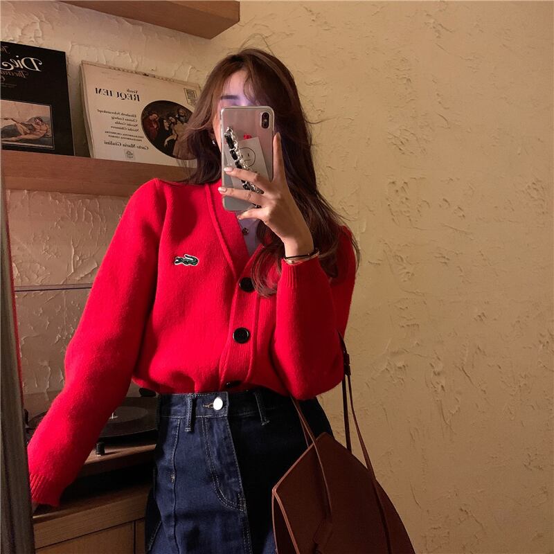 グリーンセーター コート スプリングルーズニットVネックカーディガントップス レッド 刺繍 春物 セブンプリンセス51215906308