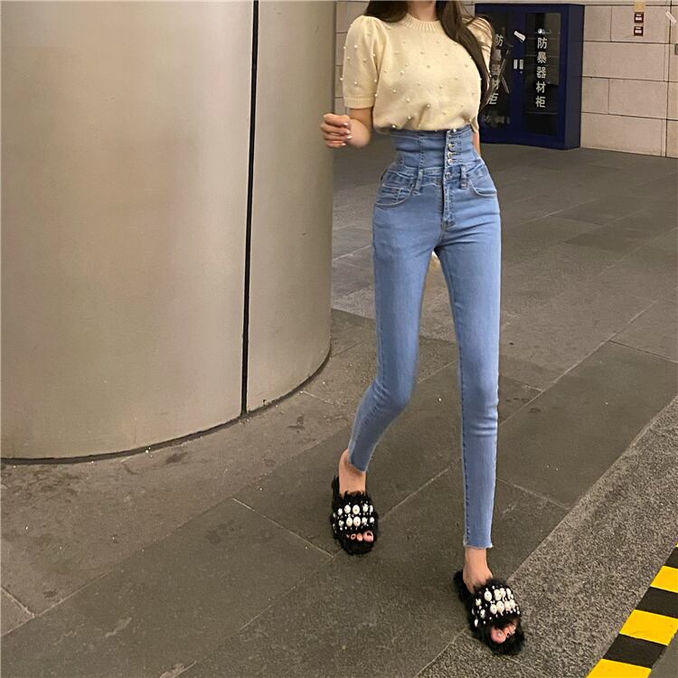 スキニージーンズ レディーススプリングハイウェストウェストスリムパンツ 春物 セブンプリンセス98780896520