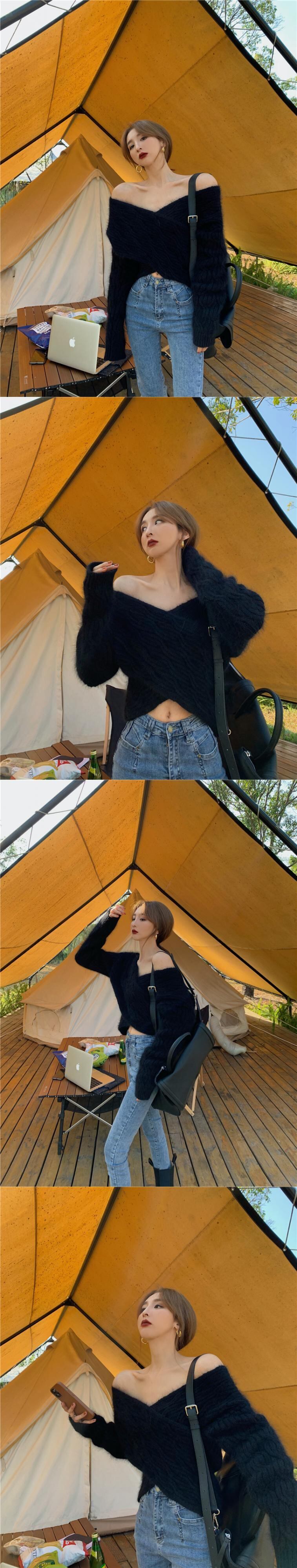セーター スタイルスプリングサマースタンダードクロスストラップレスシャツ スリムショートニットレディース ロング レトロ 春物 夏物 セブンプリンセス49016028849