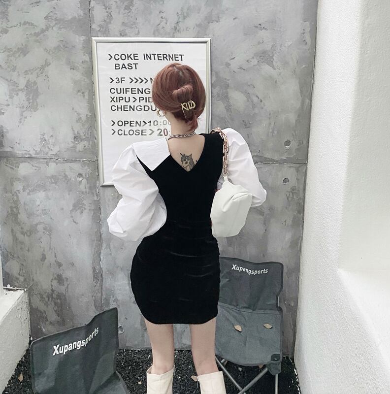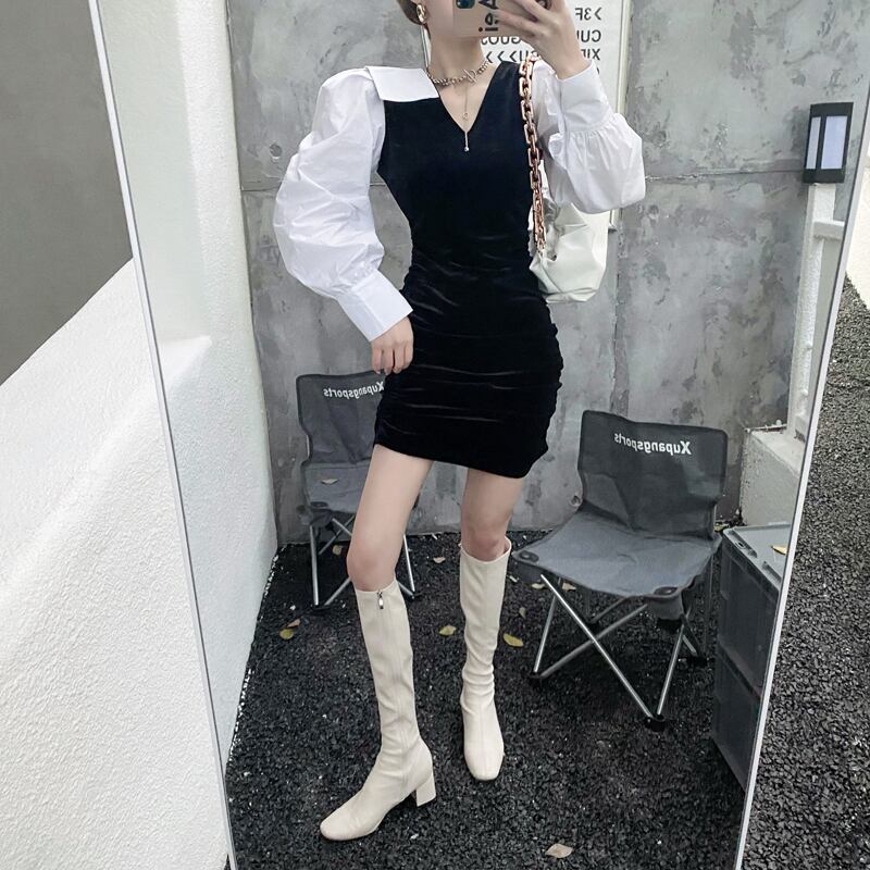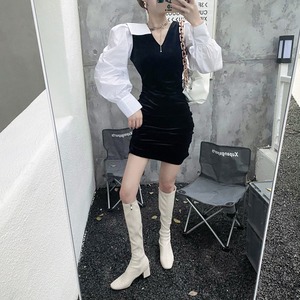 ベルベットスリーブドレス スプリングスタイルカラーウェストスカート ロング 春物 セブンプリンセス13871072523