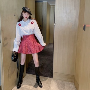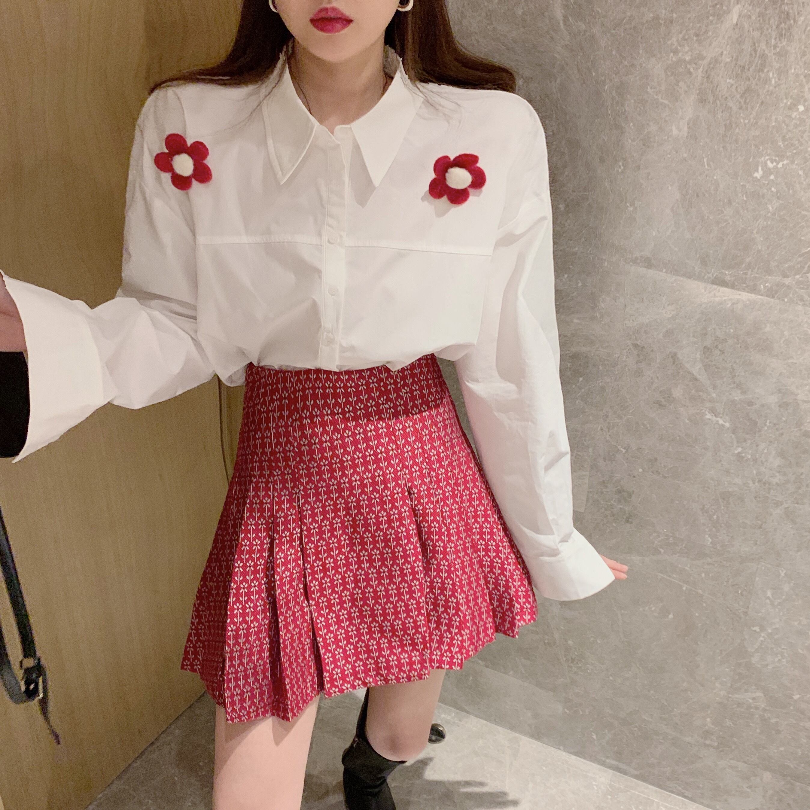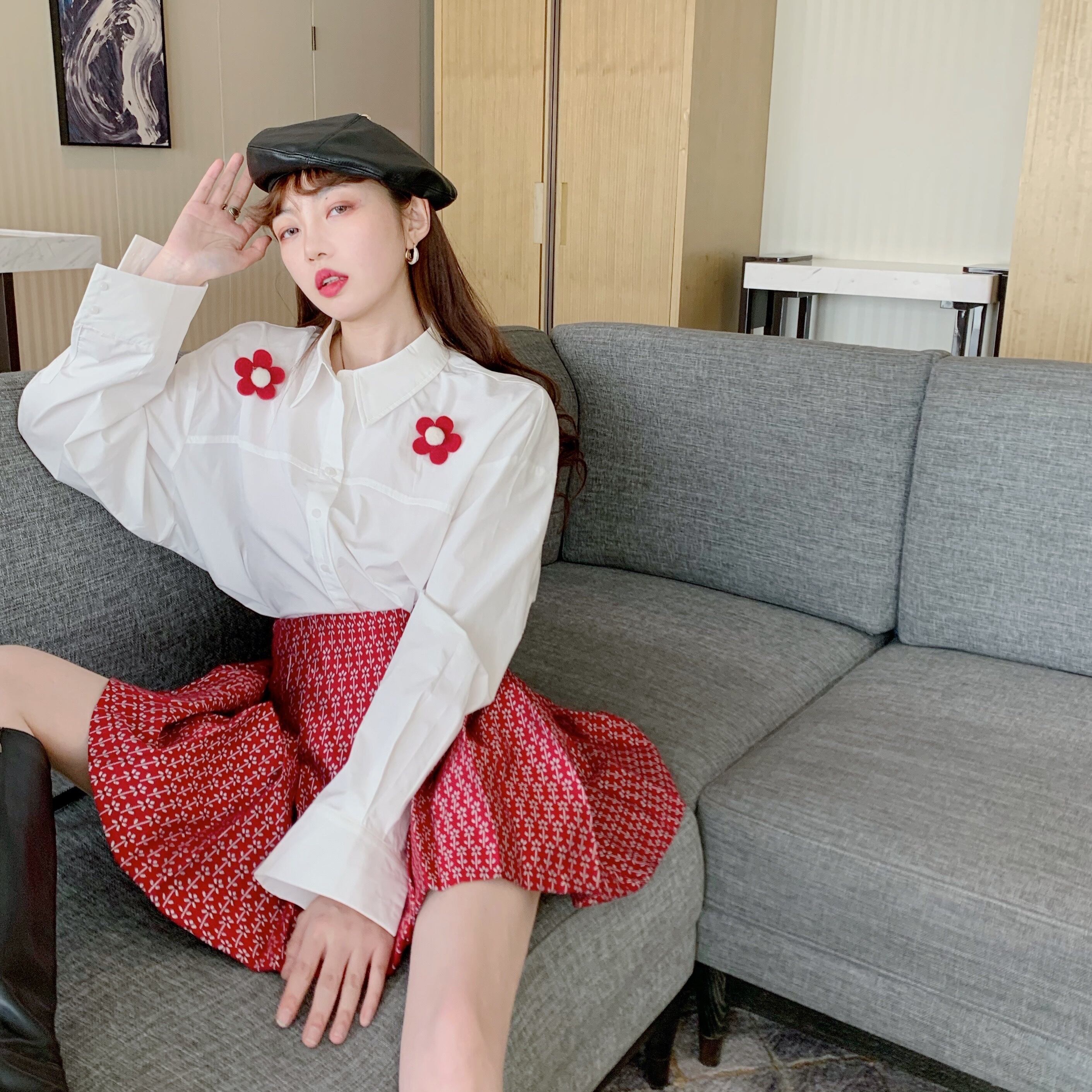 スプリングホワイトシャツ レディースルーズトップス 春物 フラワーデザイン セブンプリンセス41356873747