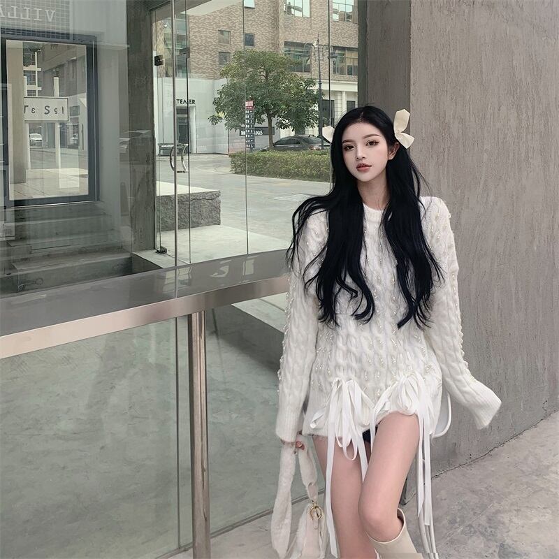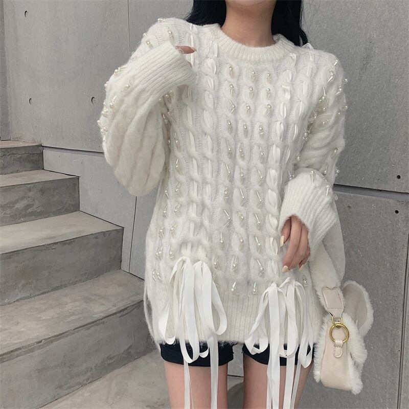 ルーズセーター スプリングサマーパールトップス リボン 春物 夏物 真珠 セブンプリンセス9518484130