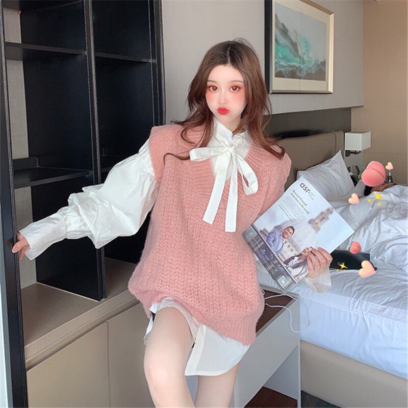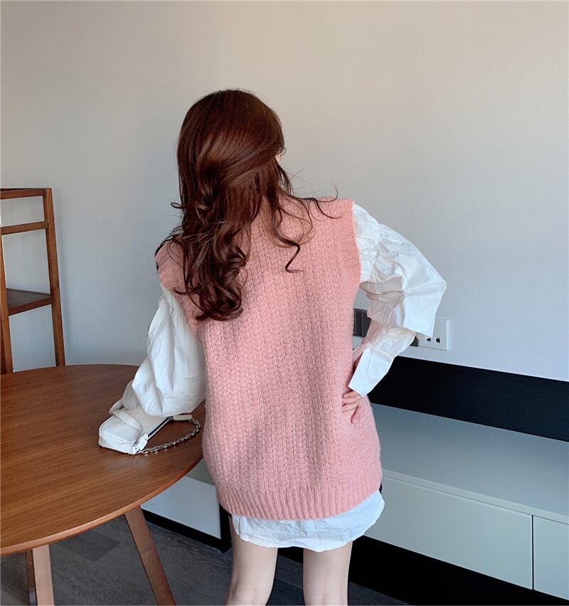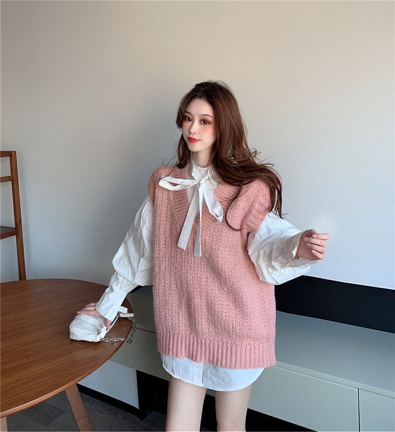 色:白のシャツ,ピンクのベスト,レイクブルーベスト