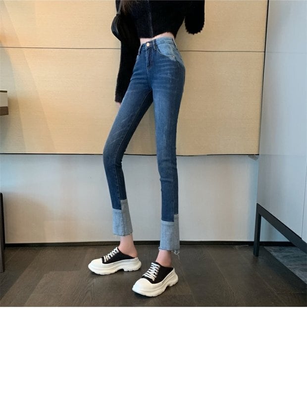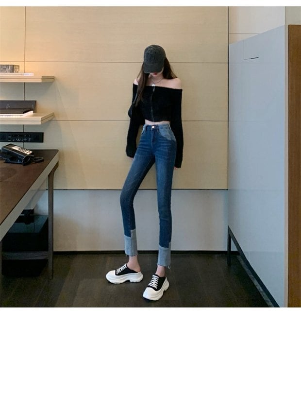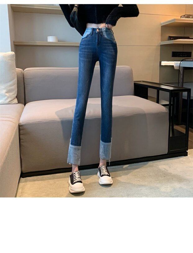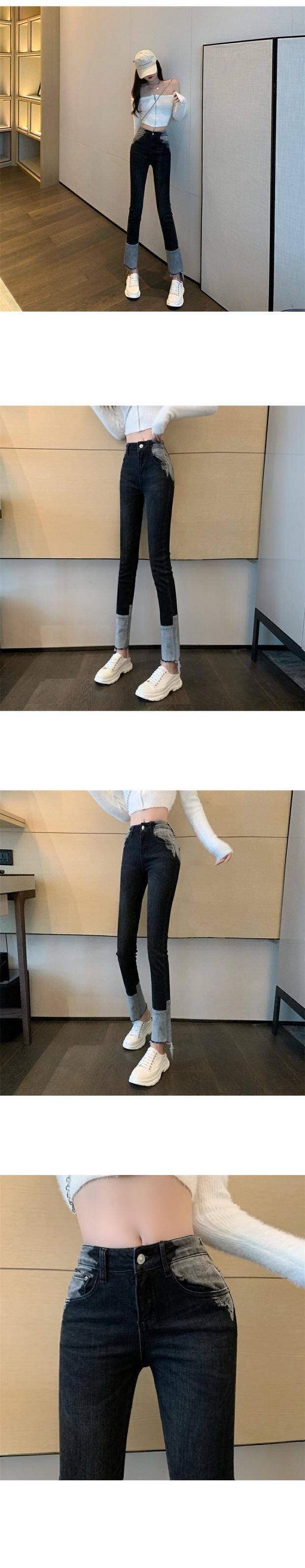 パンツ レディーススプリングサマースタイルハイウェストウェストスリムジーンズ 春物 夏物 セブンプリンセス38409585743
