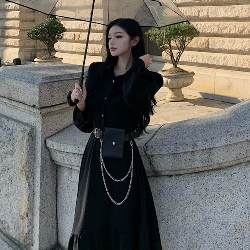 色:黒いドレス,ベルトバッグ