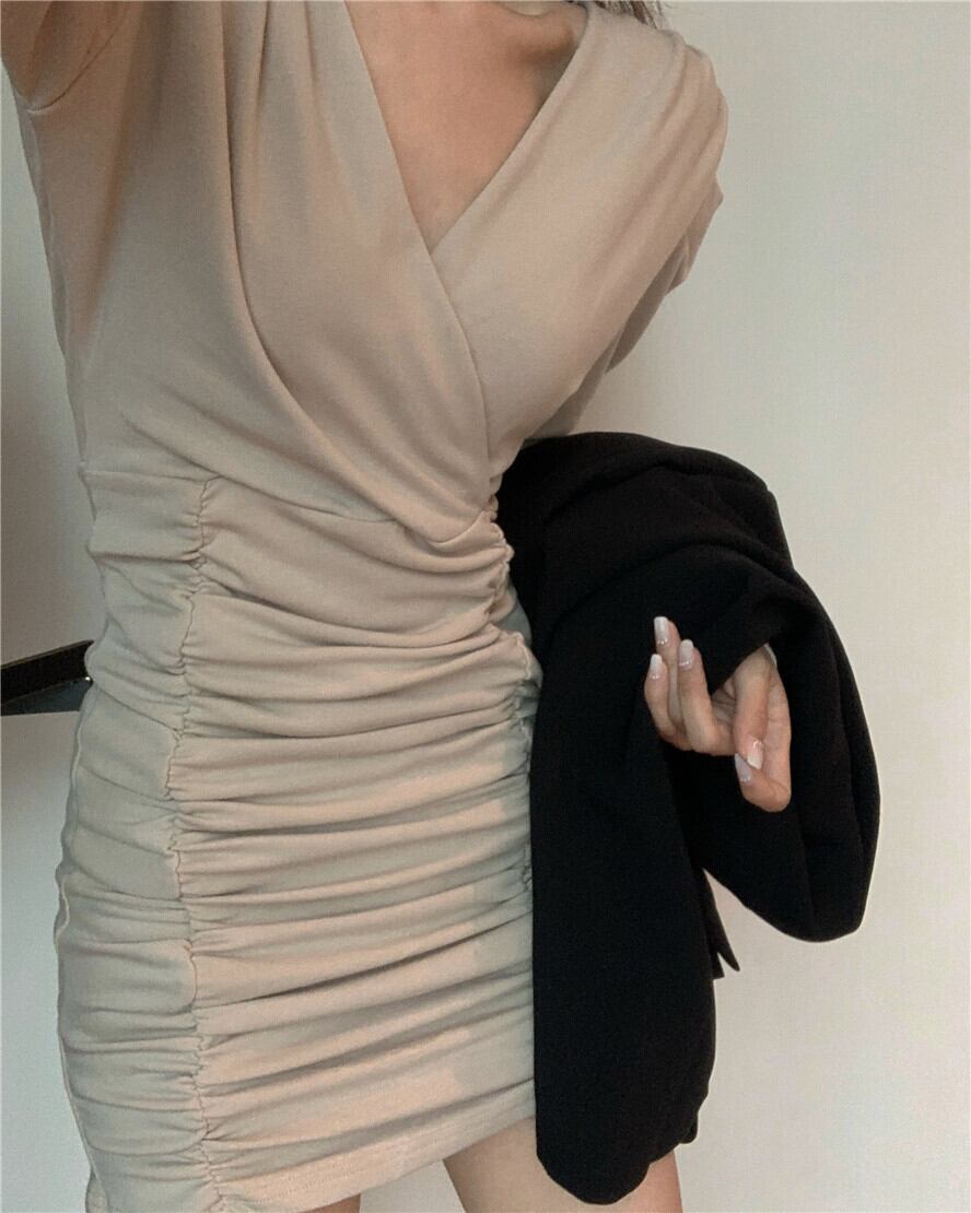 スリーブドレス ウェスト薄手スタイルオータムVネックスカート 秋物 ウィンター 冬物 セブンプリンセス77545971111