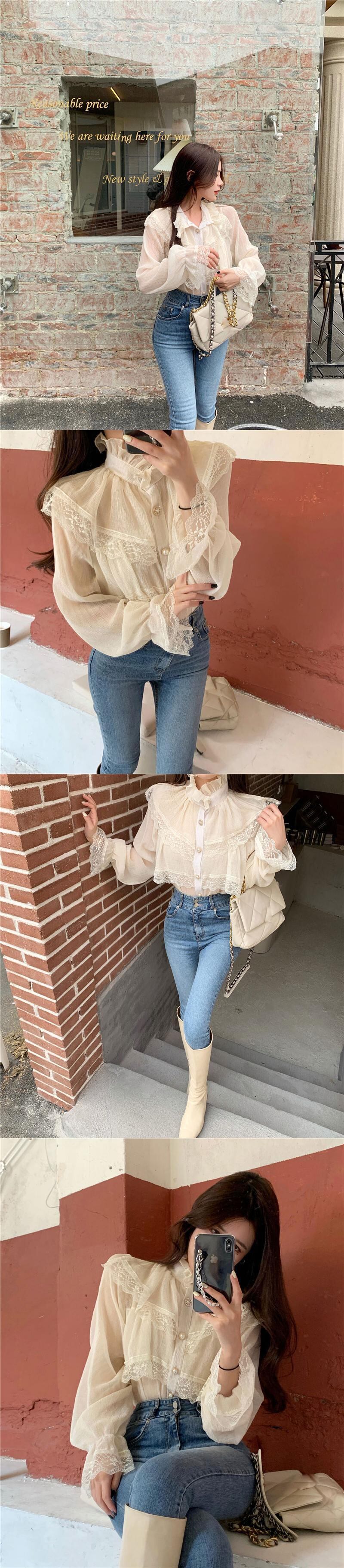 シフォンシャツ スプリングレースルーズトップス レッド 春物 セブンプリンセス99663373429