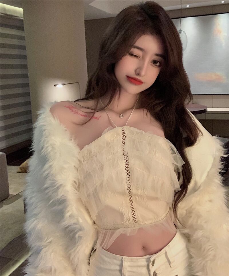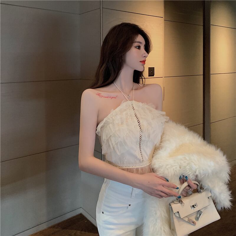 メッシュレーススプリングスタイルホルタートップス ショートシャツ 春物 セブンプリンセス74084333738