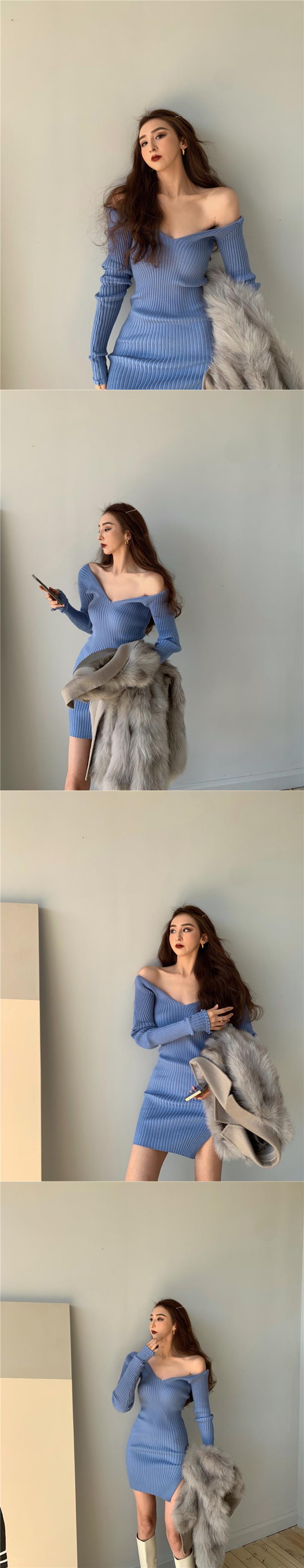 ニットドレス オータムウィンターVネックスリムスカート 秋物 冬物 セブンプリンセス64906153539