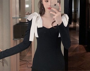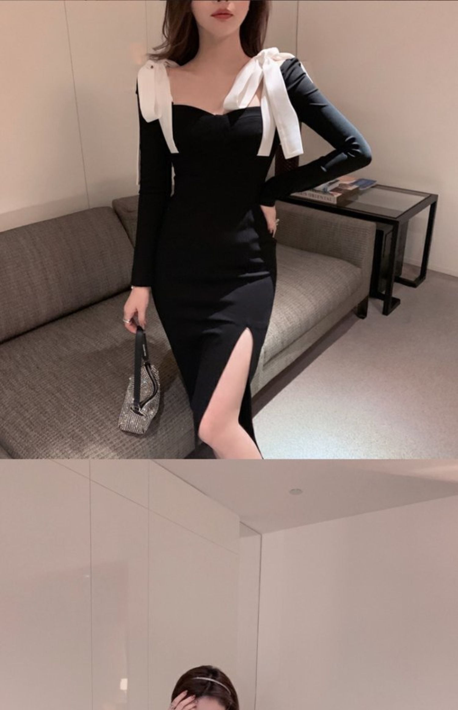 スタンダードスプリングスリムブラックロングスカート レトロ 春物 セブンプリンセス83687137378