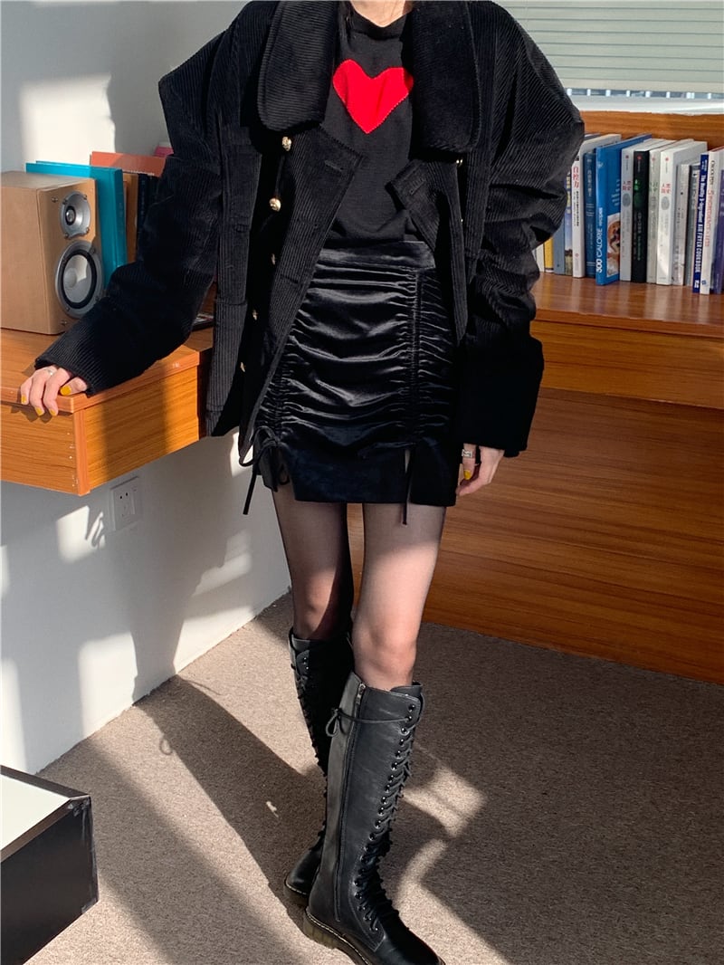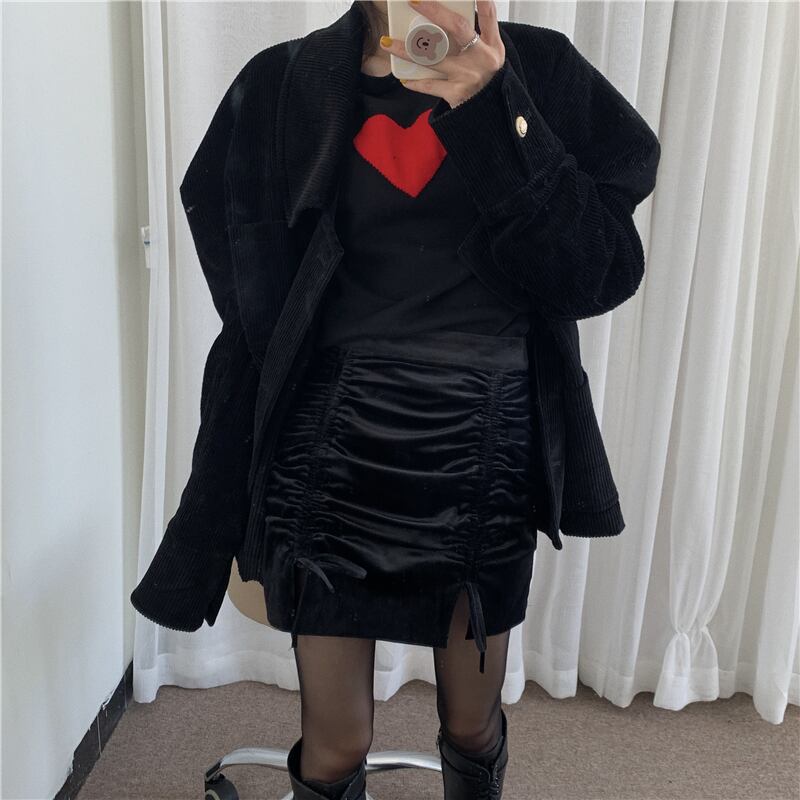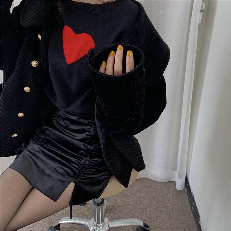 色:コーデュロイジャケット,LOVEセーター,ベルベットスカート