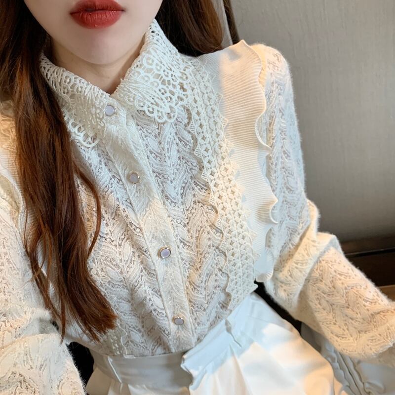 レースシャツ レディーススプリングホワイト ロング 春物 セブンプリンセス45189090131